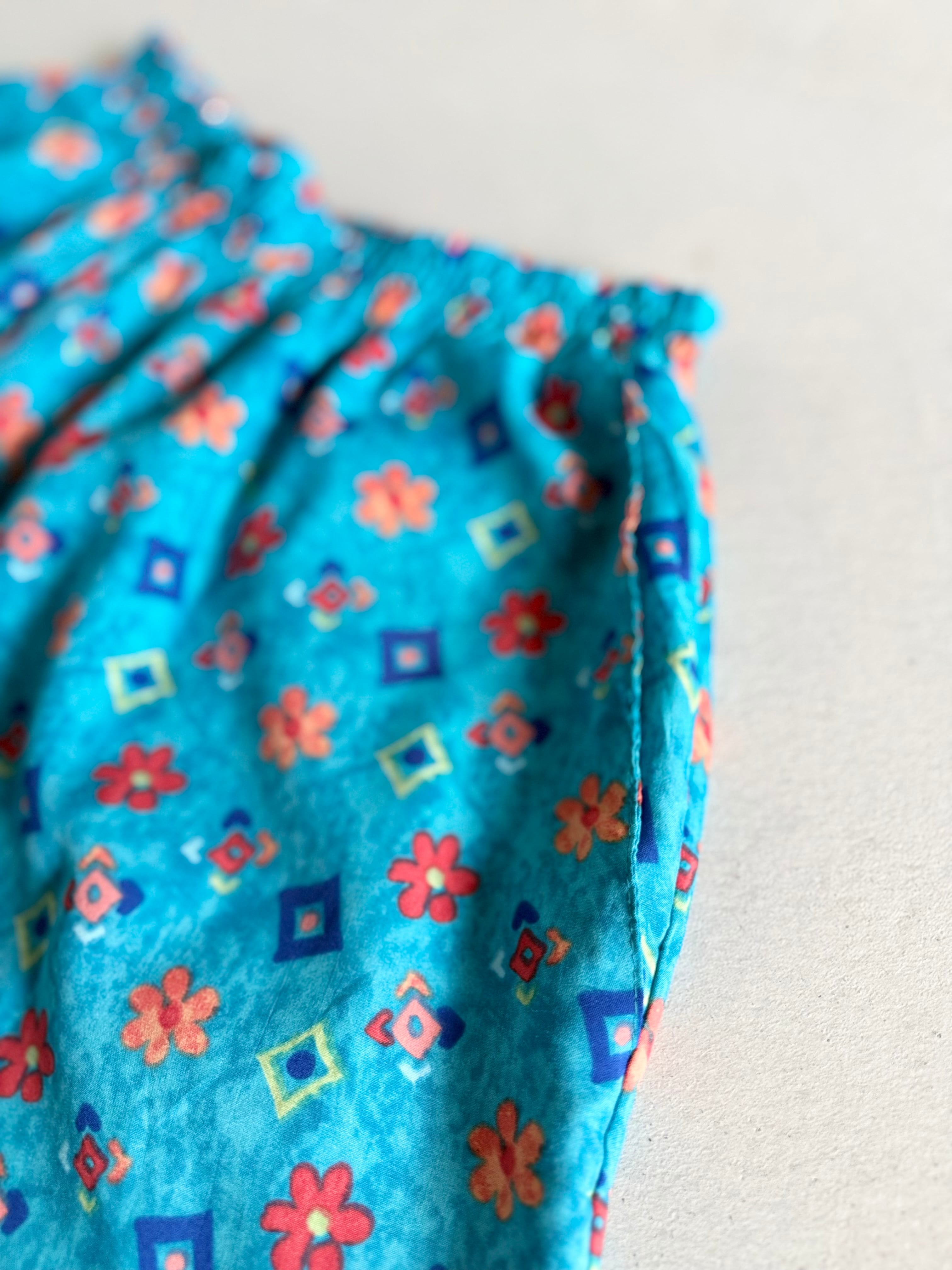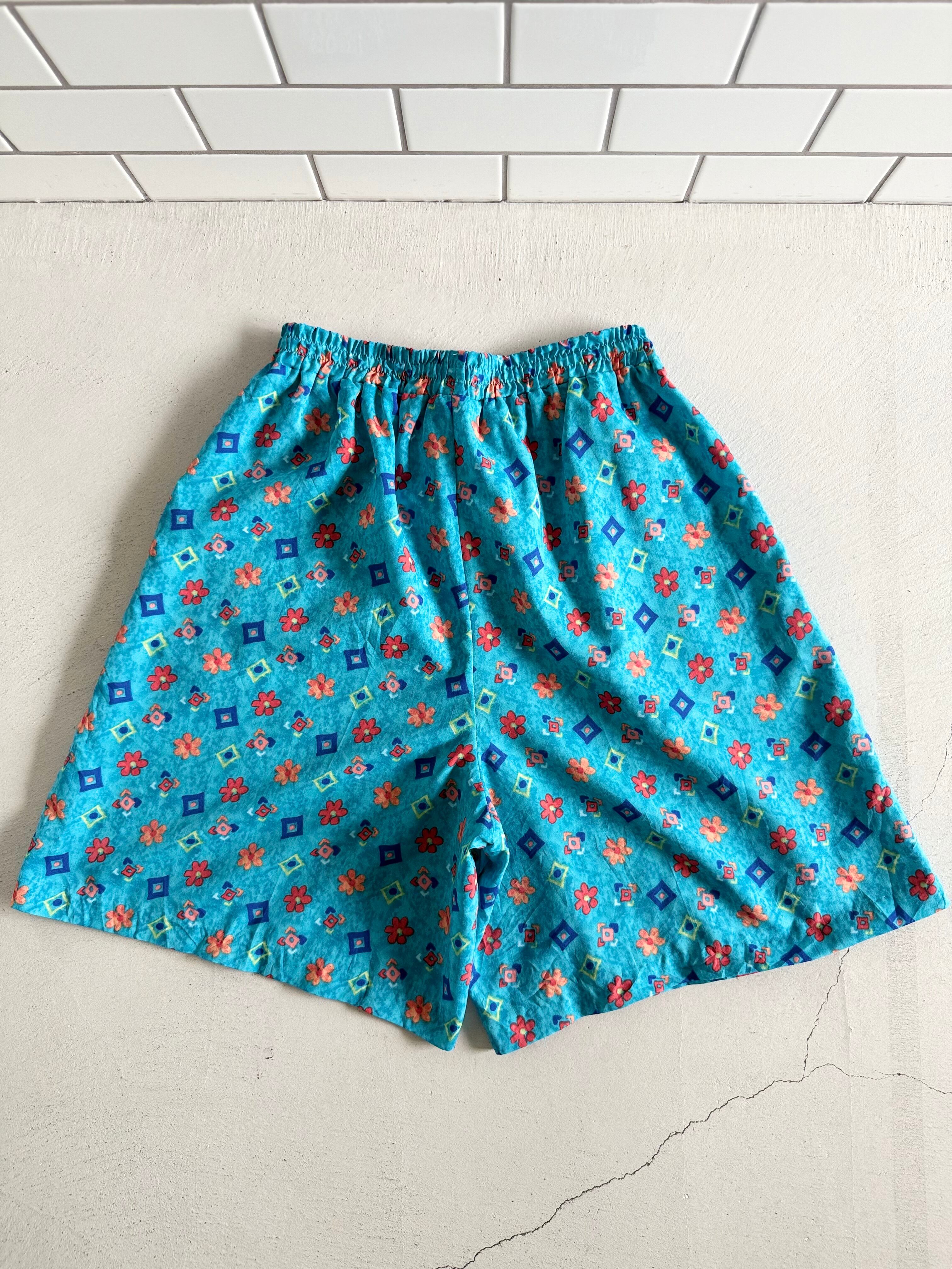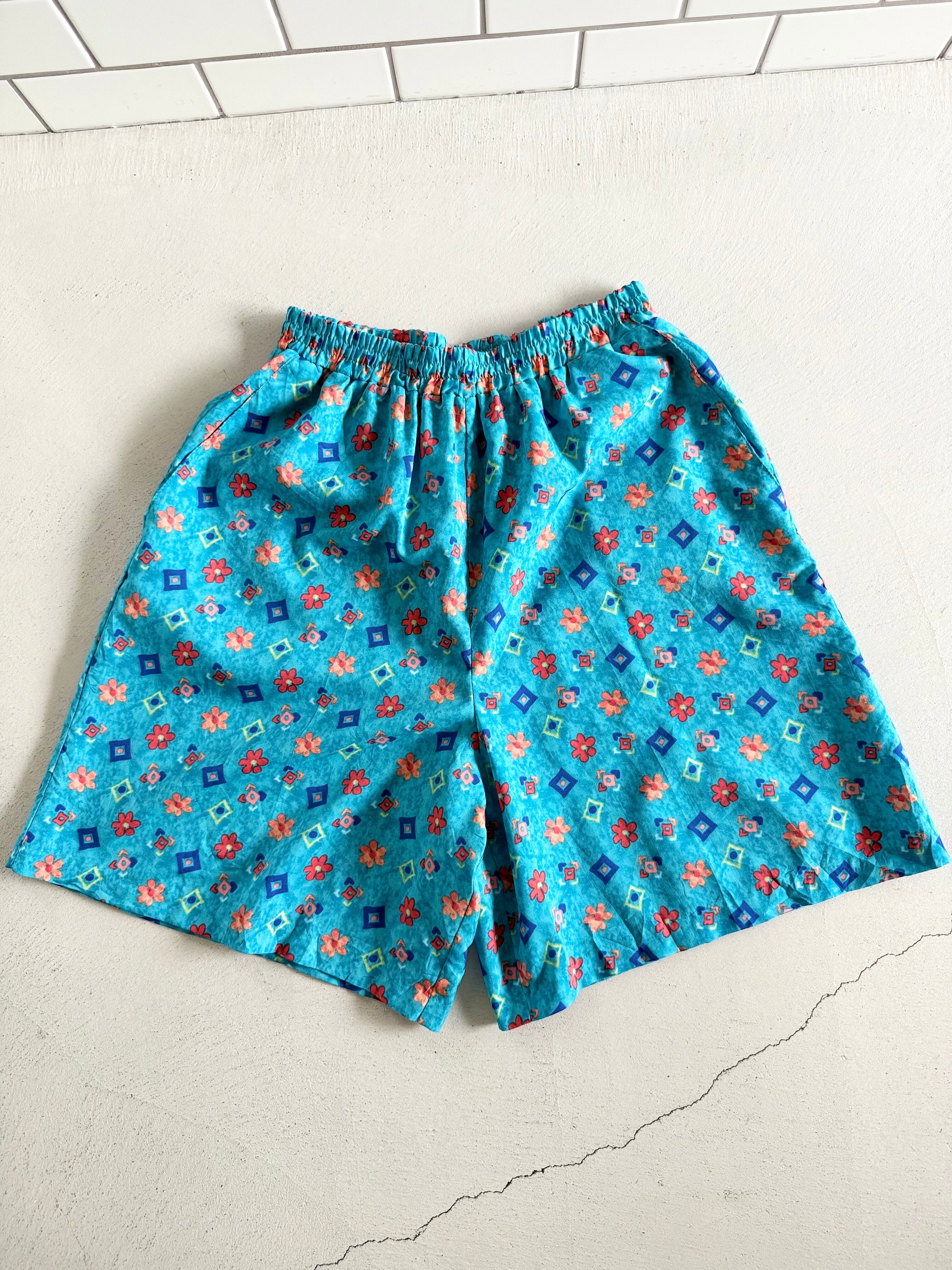 ERIN LONDON 90sプリントショーツ カラフルフラワー ユニセックス ターコイズブルー