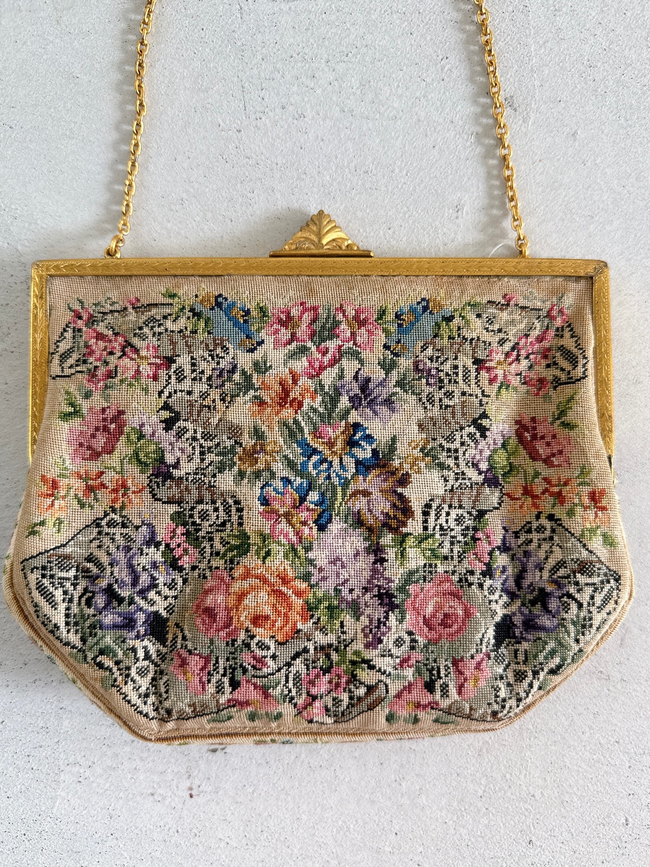 アンティークフラワーバッグ|刺繍×ゴールドフレーム ミラー付き