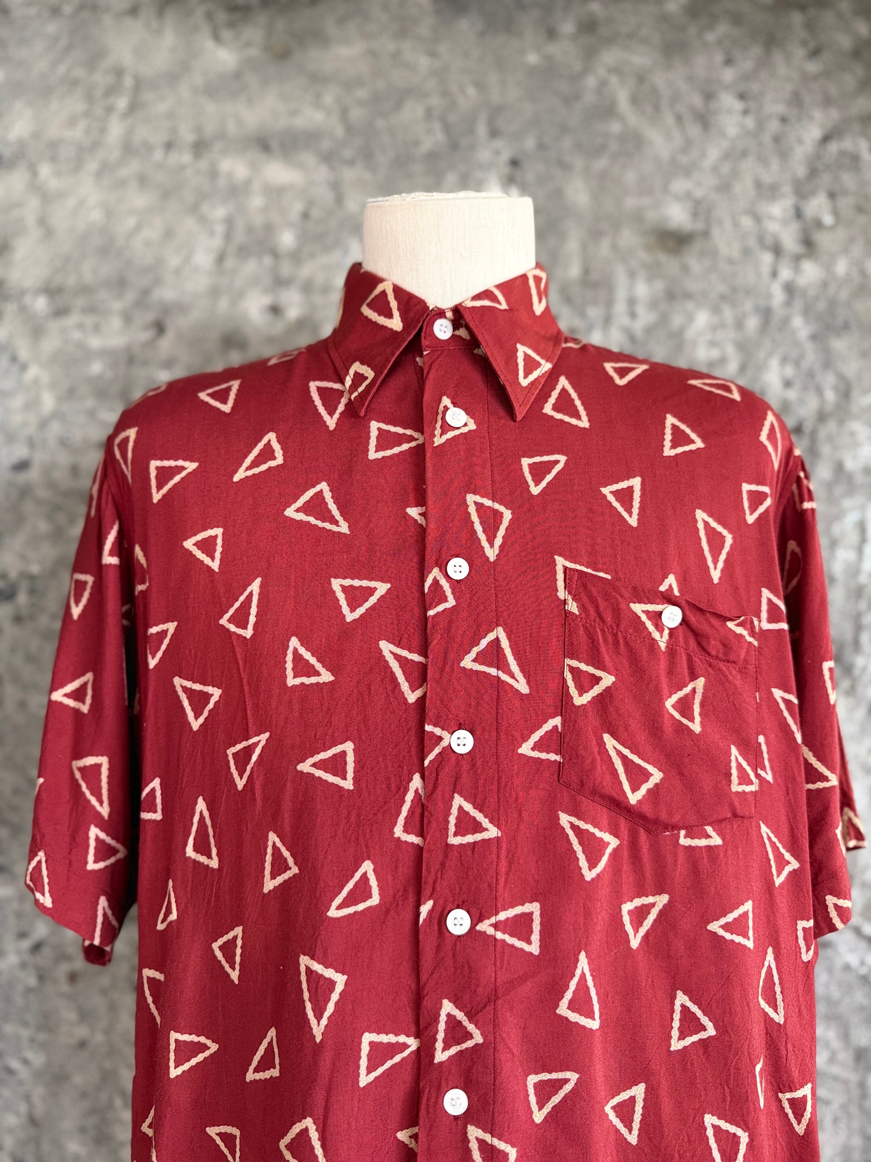幾何学トライアングル柄 ヴィンテージシャツ 開襟シャツ ユニセックス