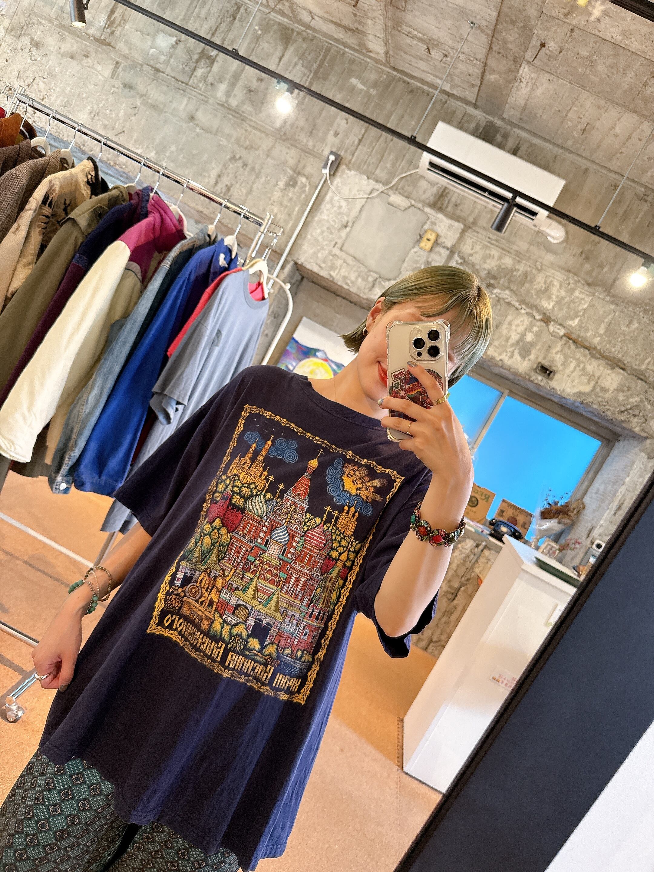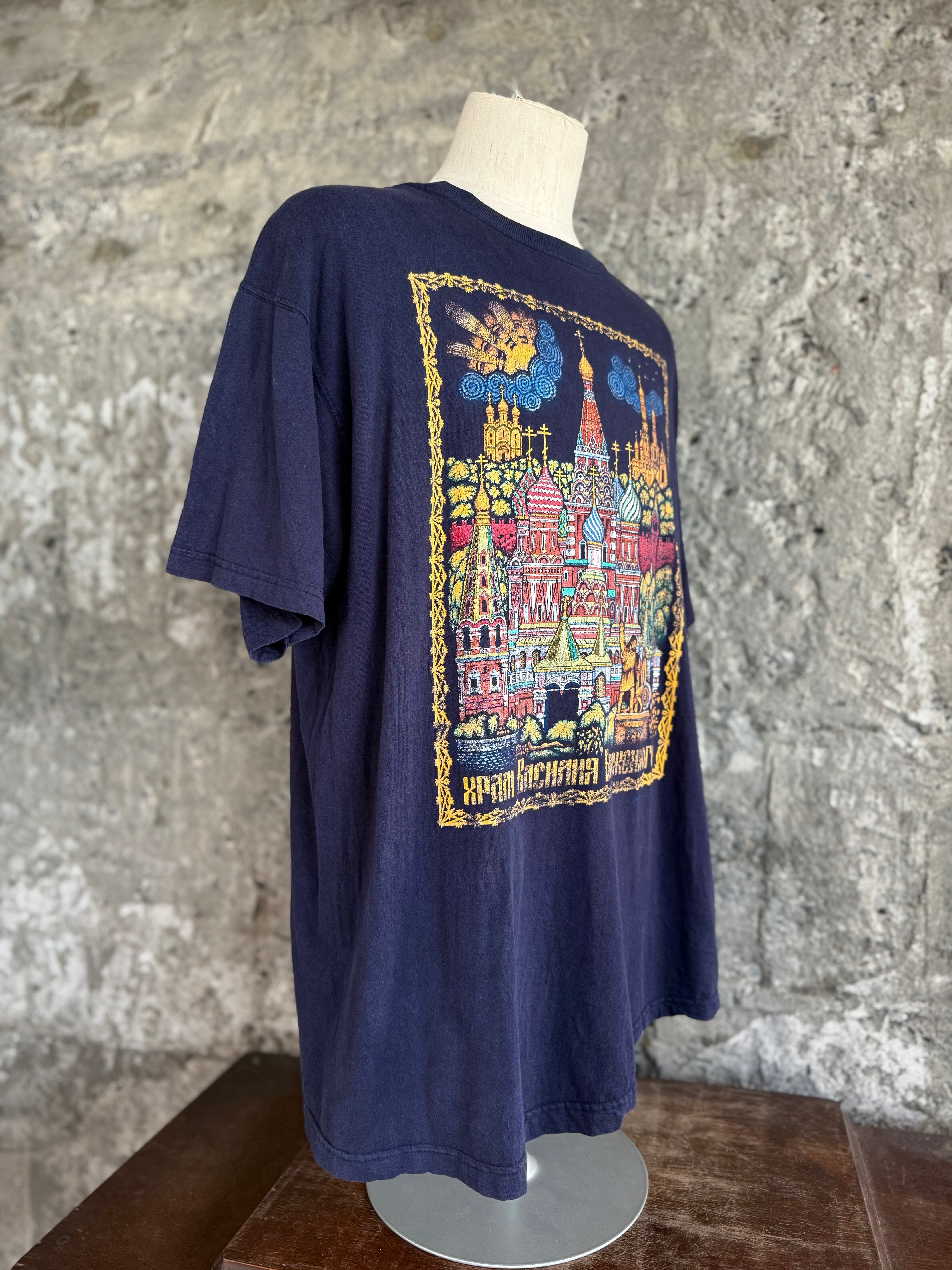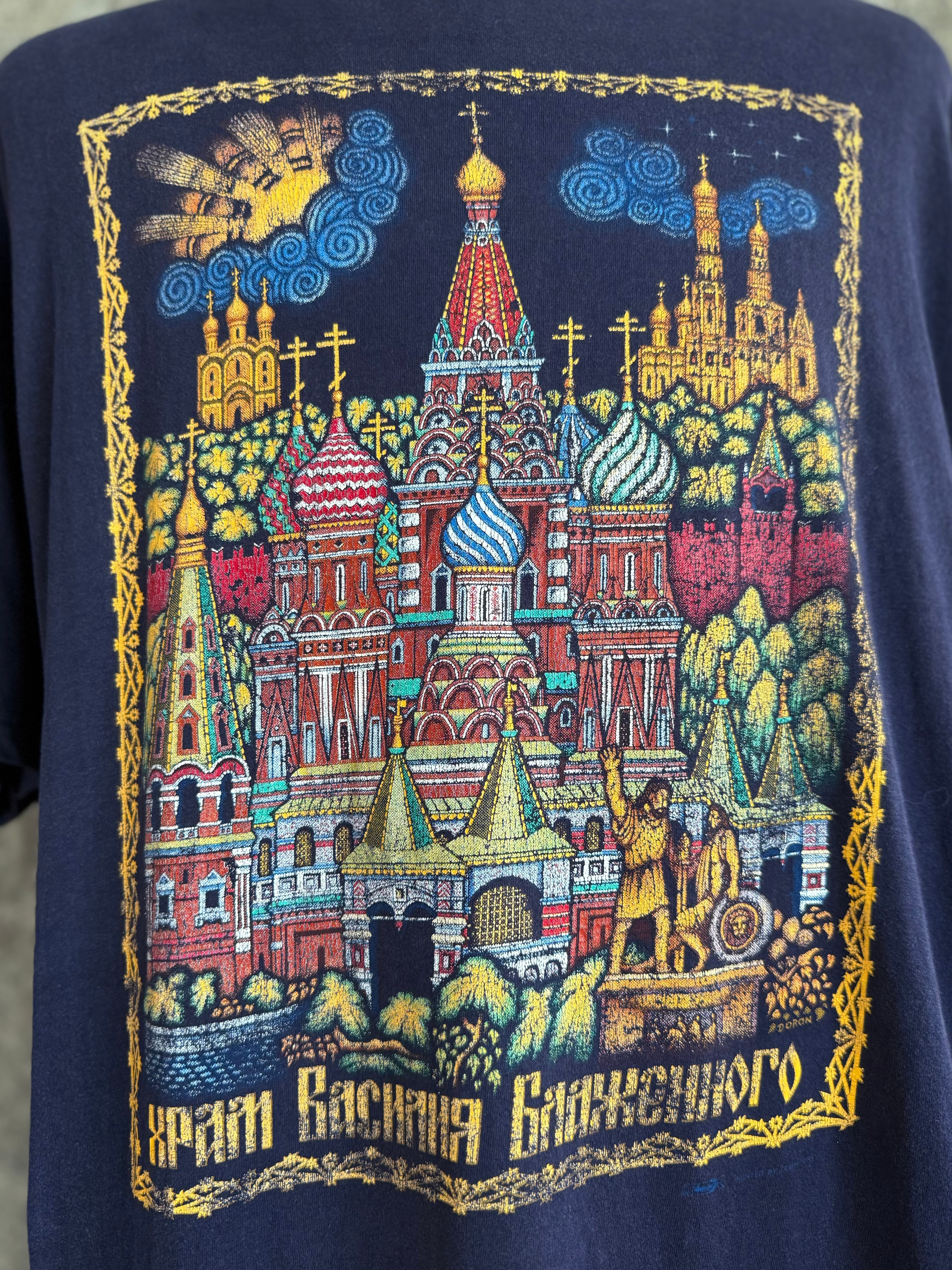 ロシア建築グラフィックTシャツ ネイビー 聖ワシリイ大聖堂 (XXL)