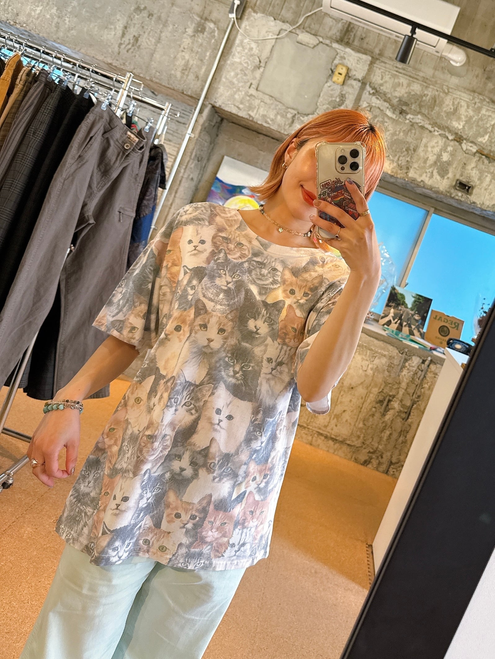 猫まみれ総柄Tee IML アニマルプリントTシャツ キャット