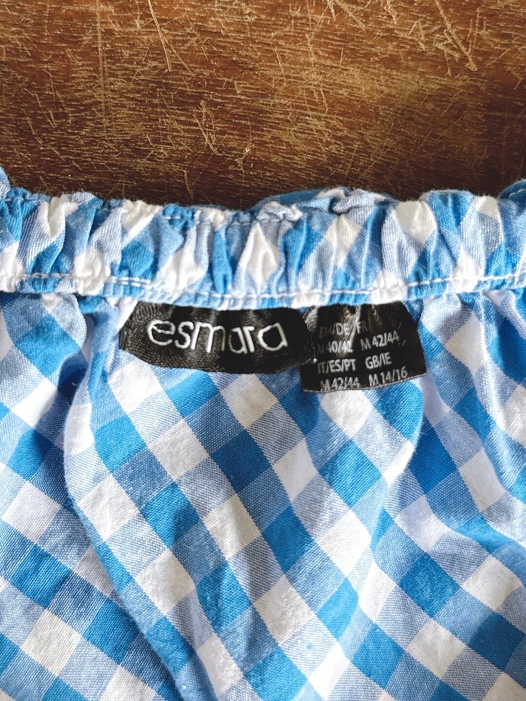 ギンガムとレースのヨーロピアンガーリーブラウス リボン ブルー