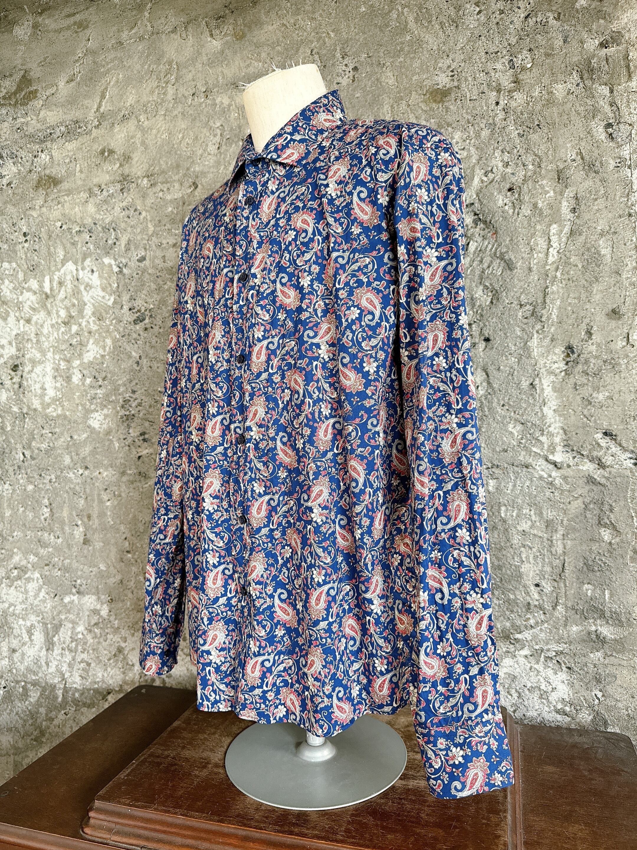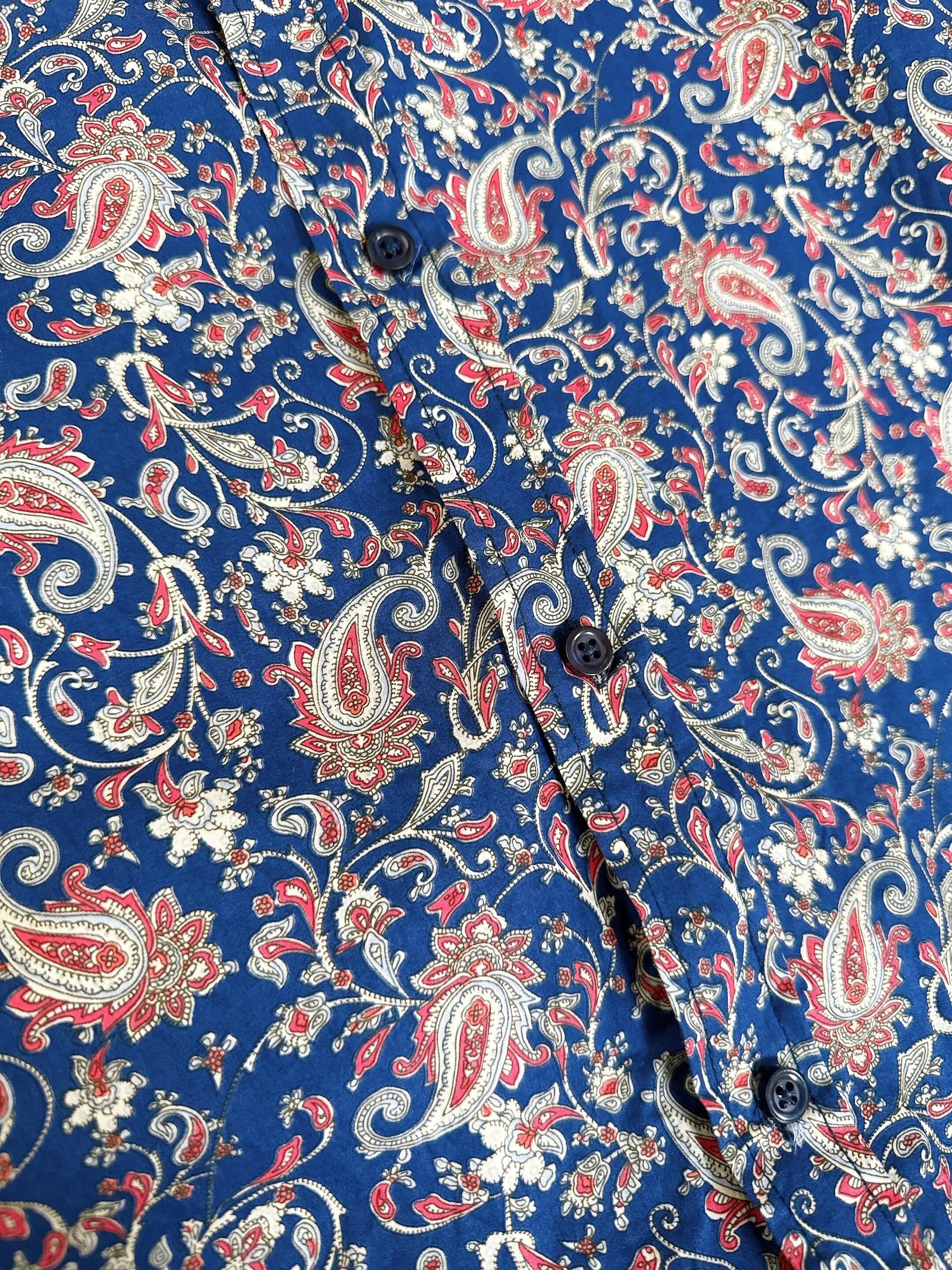 ペイズリー総柄シャツ ネイビー×レッド XXL