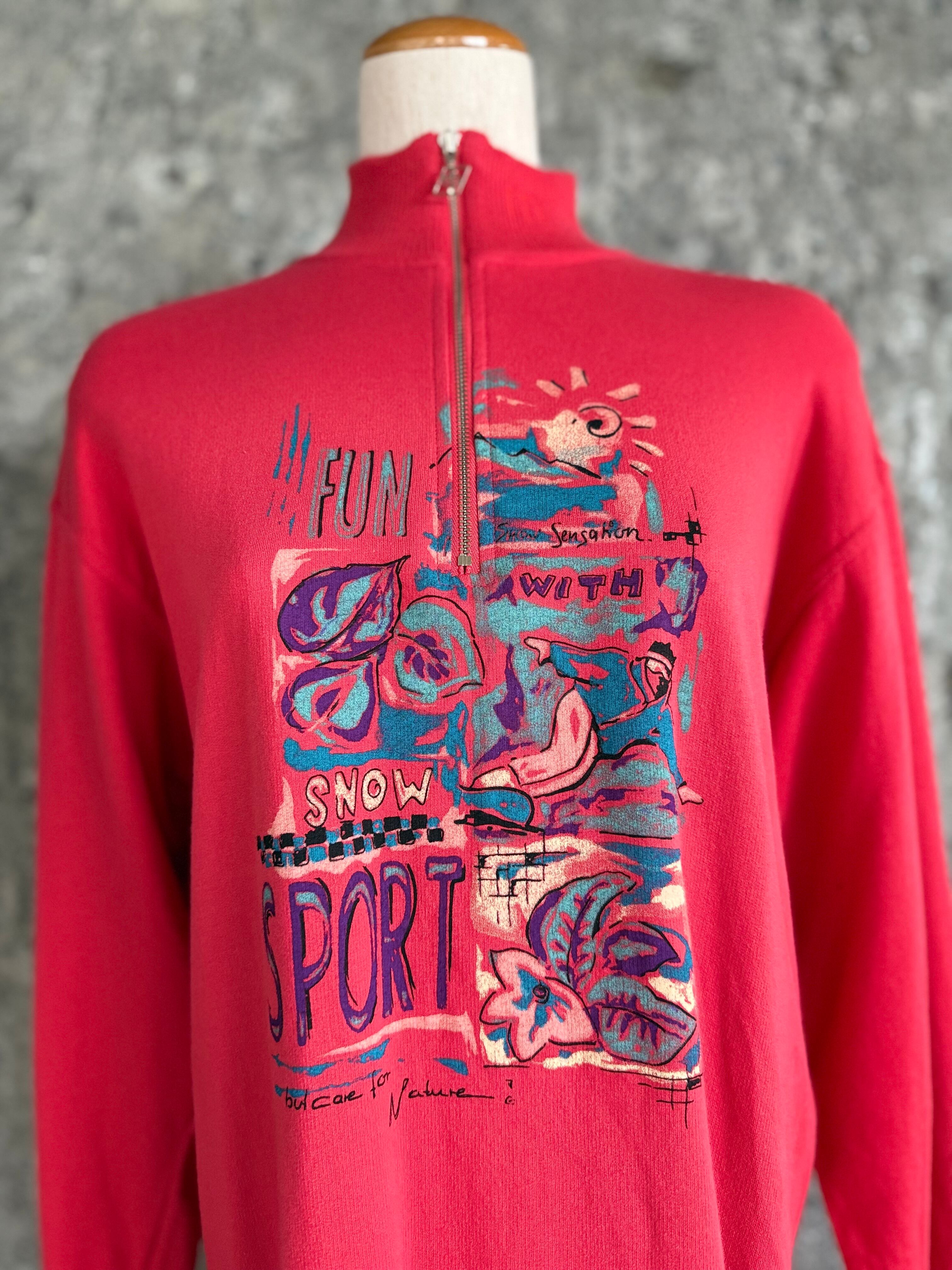 スポーツグラフィック ハーフジップTシャツ(レッド)ロンT