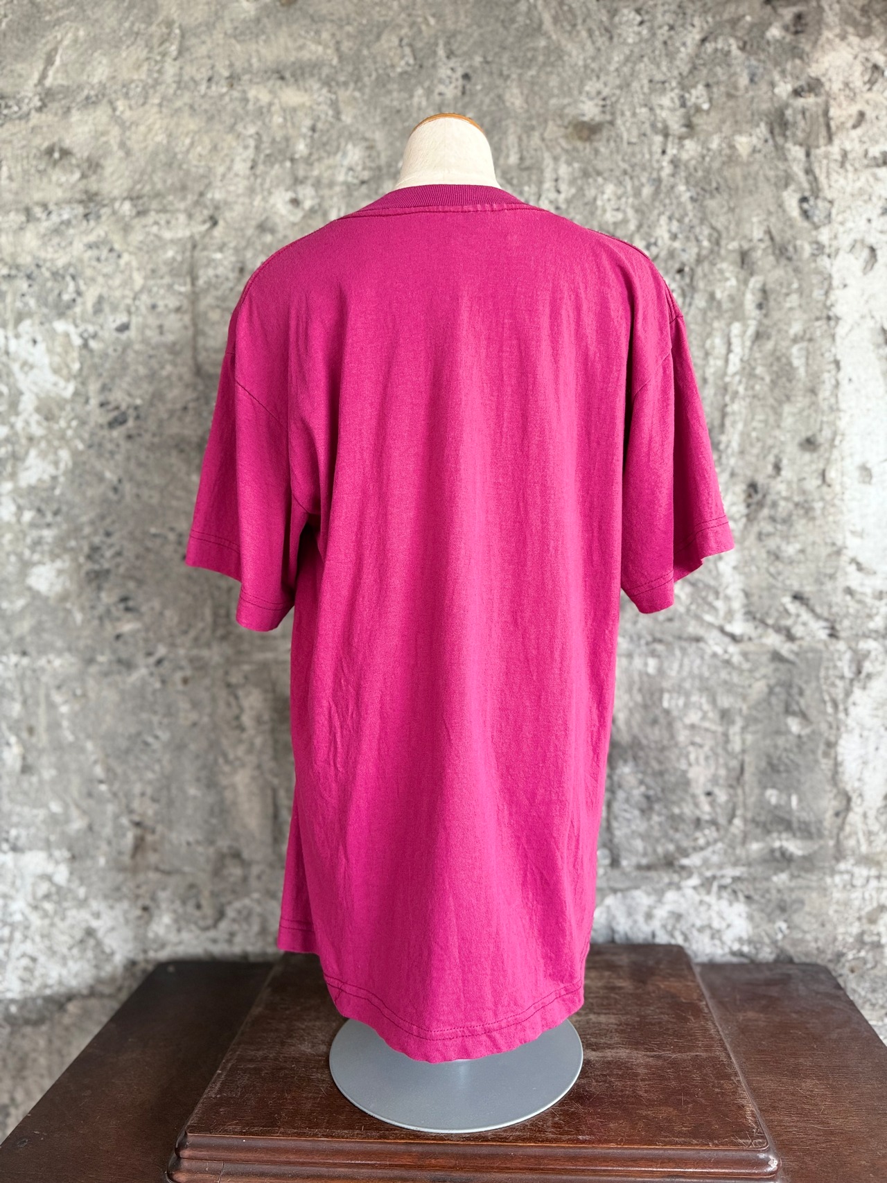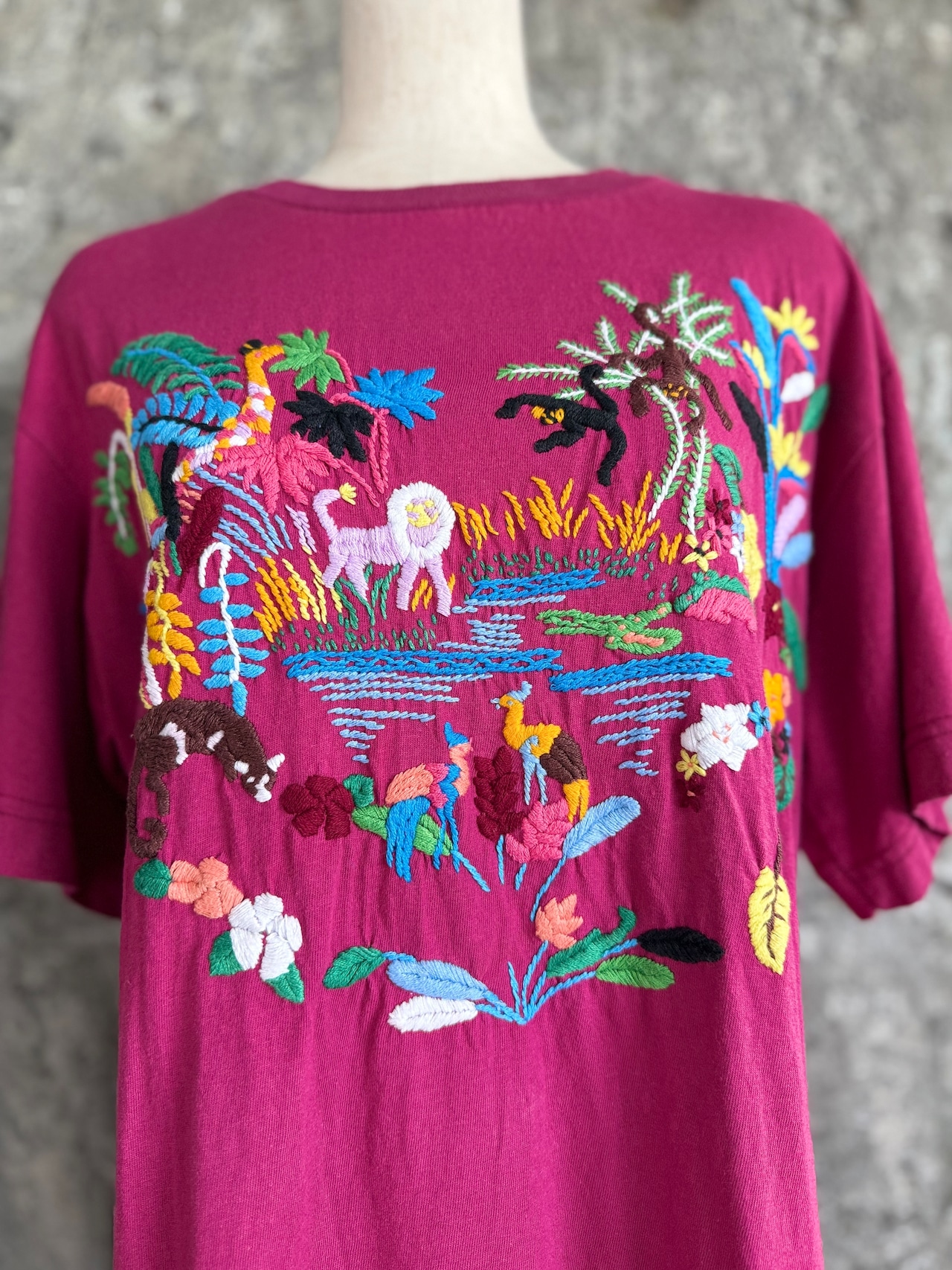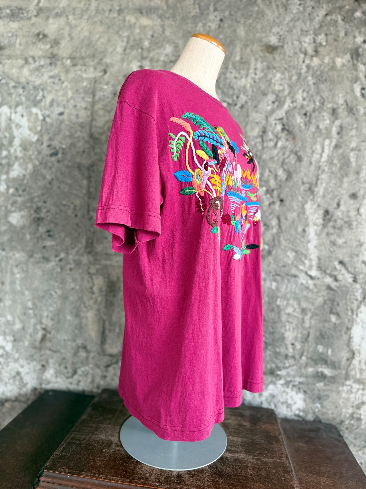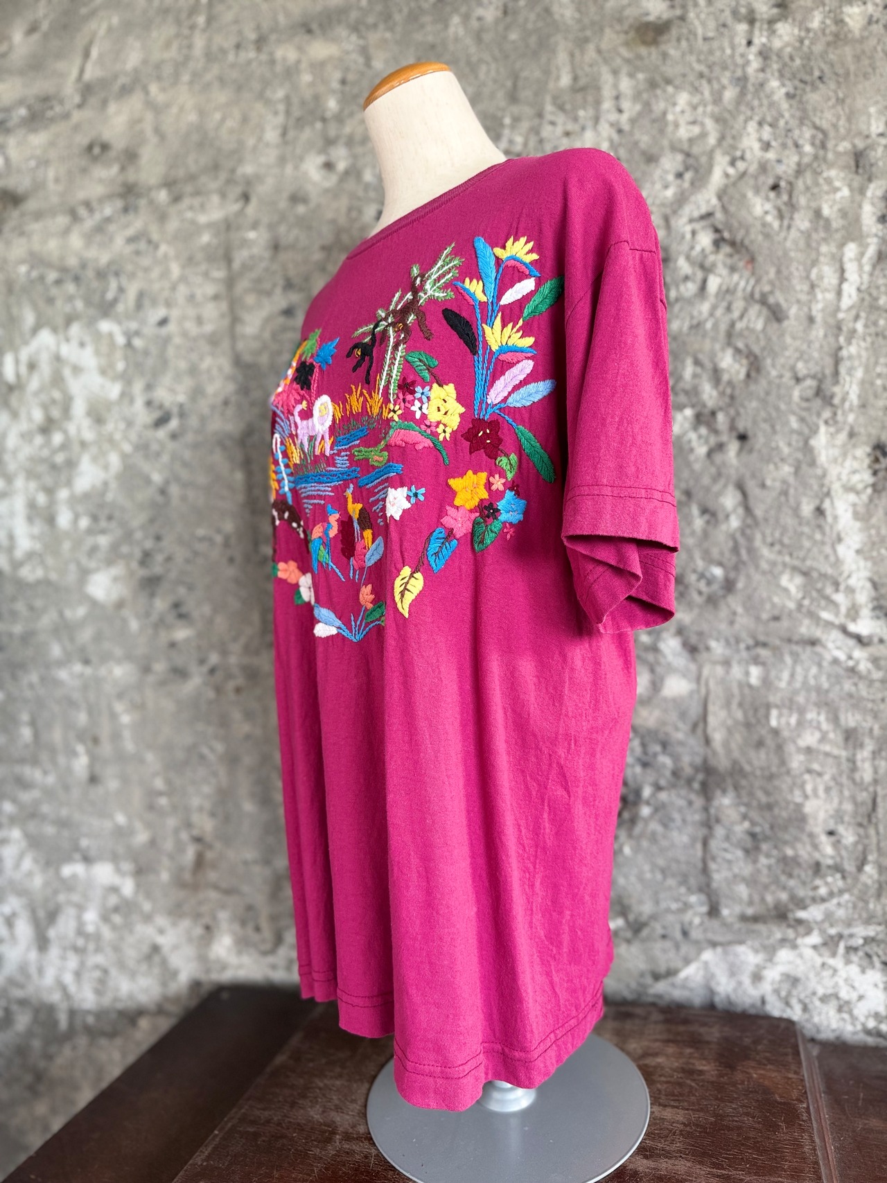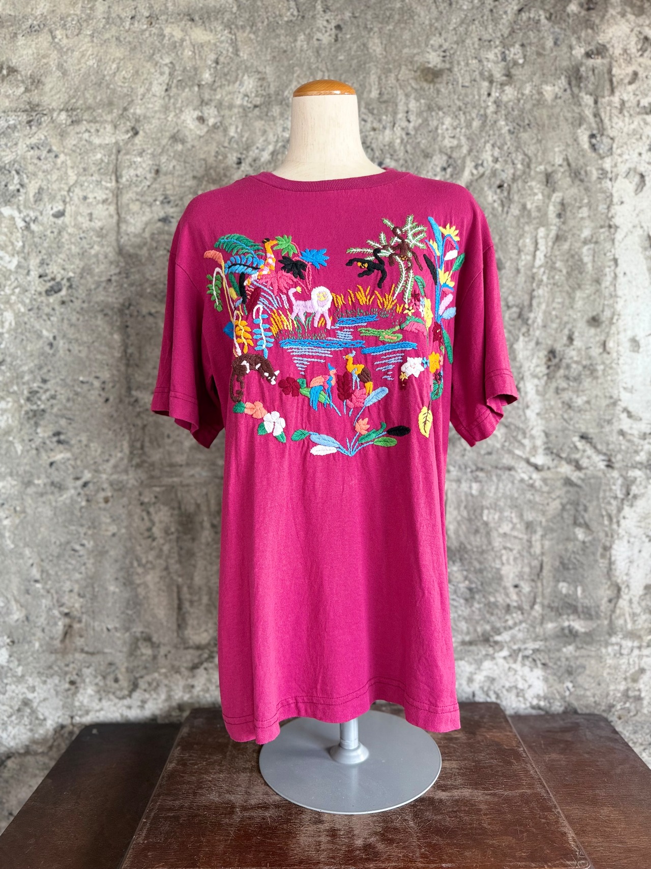 トロピカルアニマル刺繍Tシャツ ビビッドマゼンタ カラフル USA古着