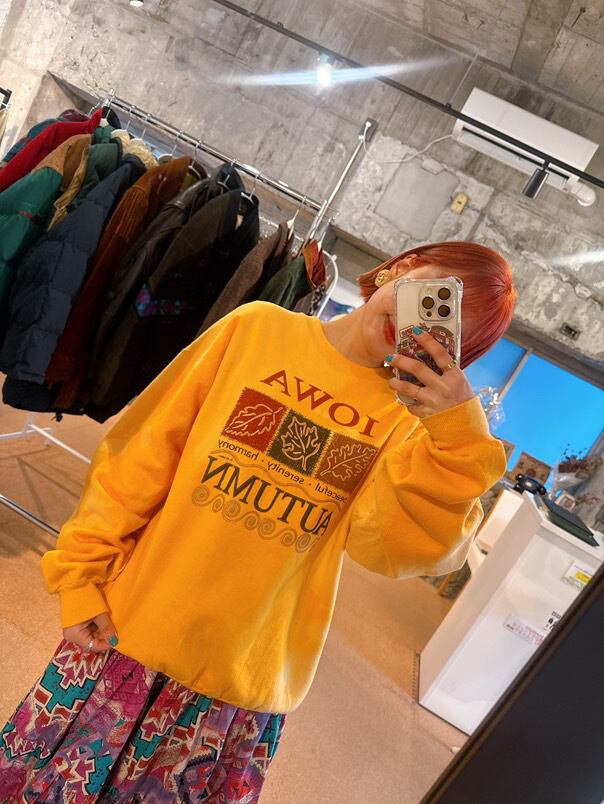 Hanes イエロー スウェット トレーナー IOWA AUTUMN プリント L