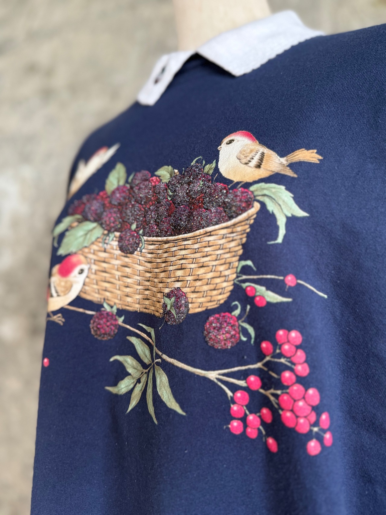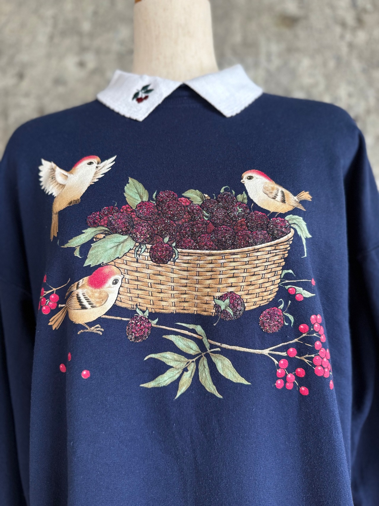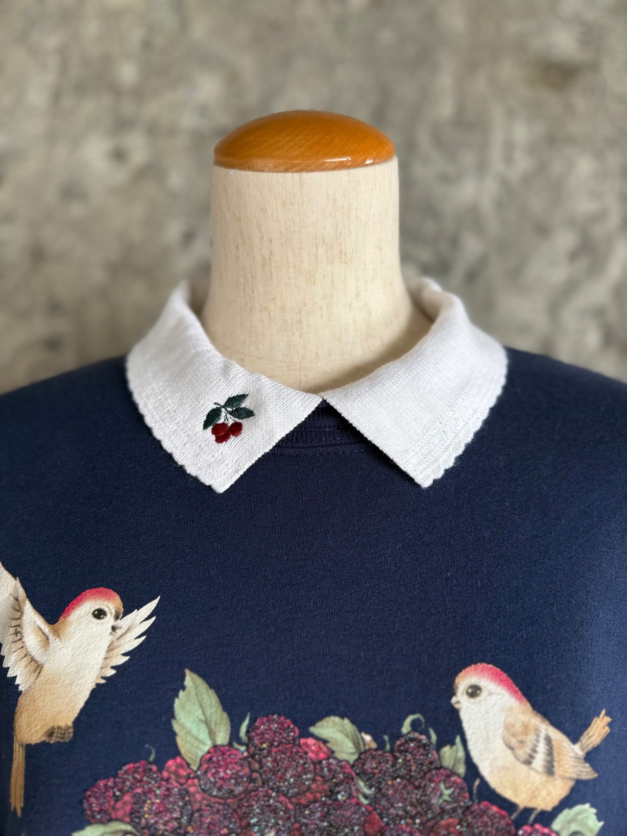 Morning Sun 襟付きスウェット / 小鳥とベリー刺繍 L