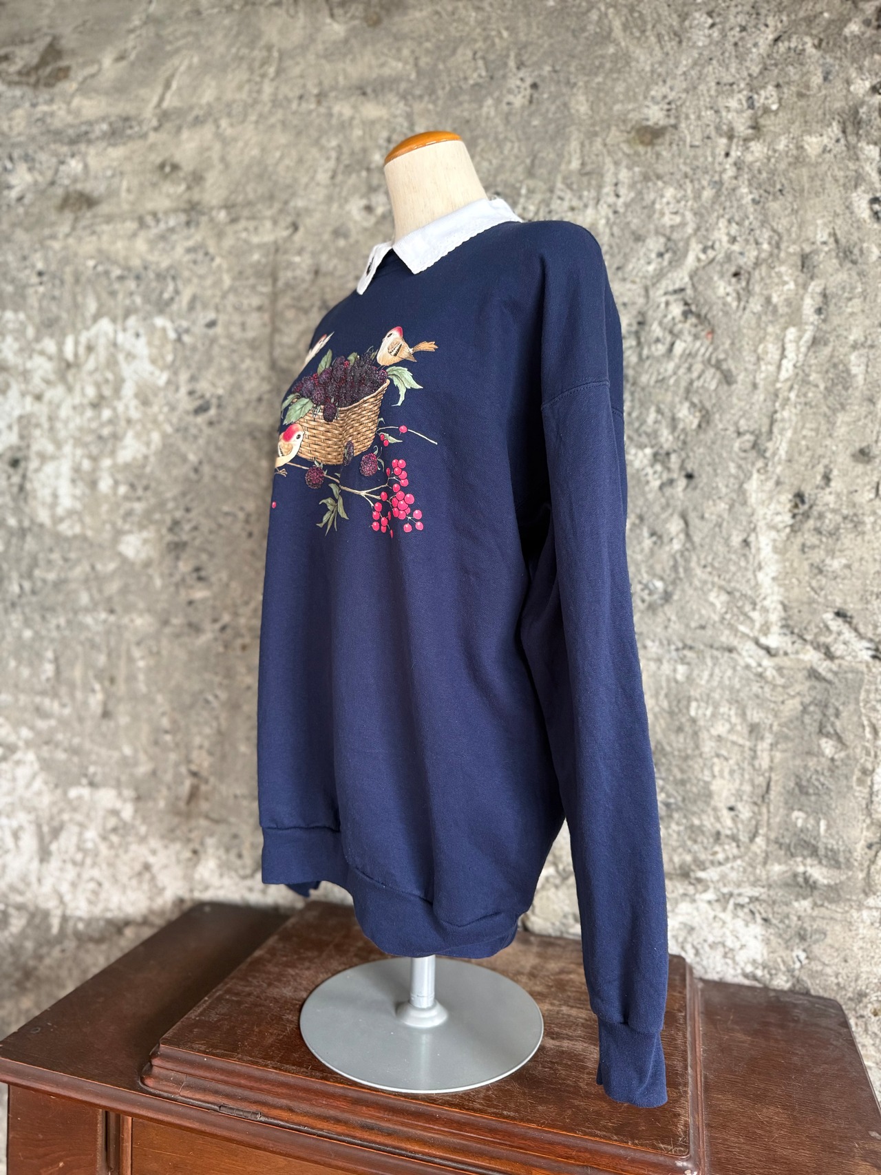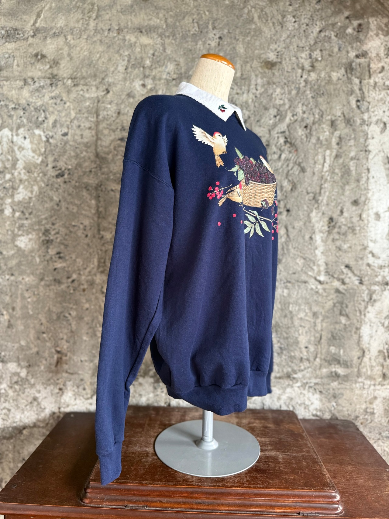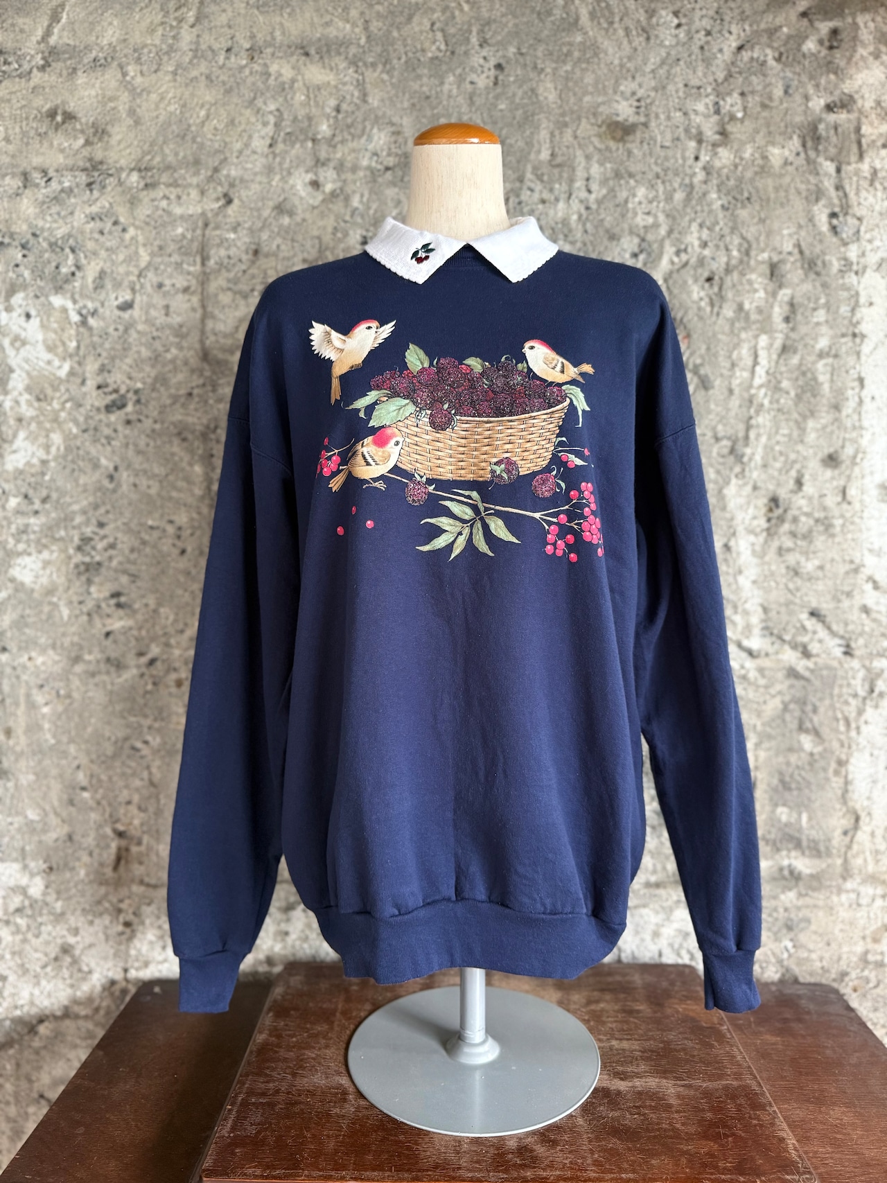 Morning Sun 襟付きスウェット / 小鳥とベリー刺繍 L