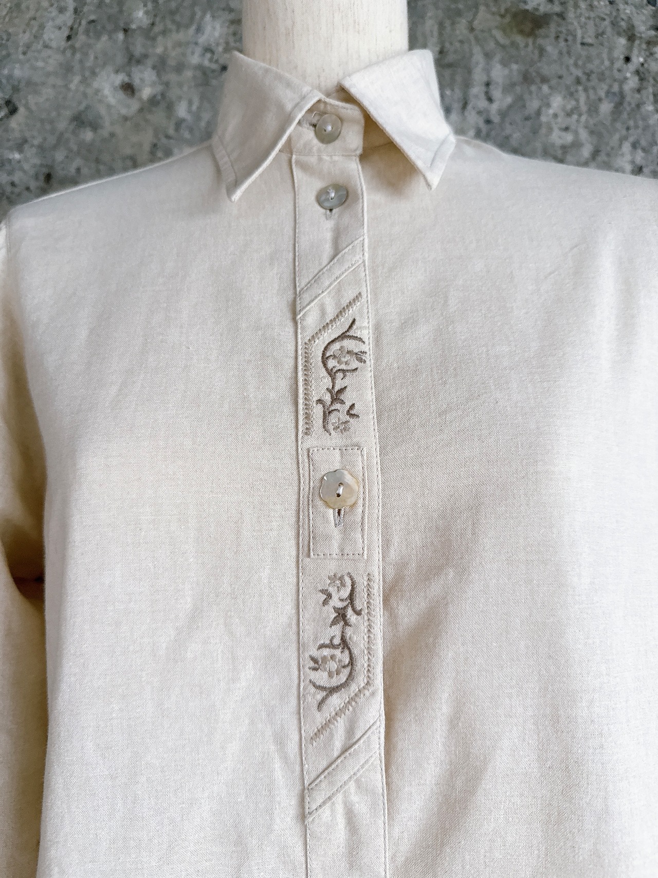 ユーロ古着 刺繍 ナチュラルチロルシャツ Grachten ベージュ