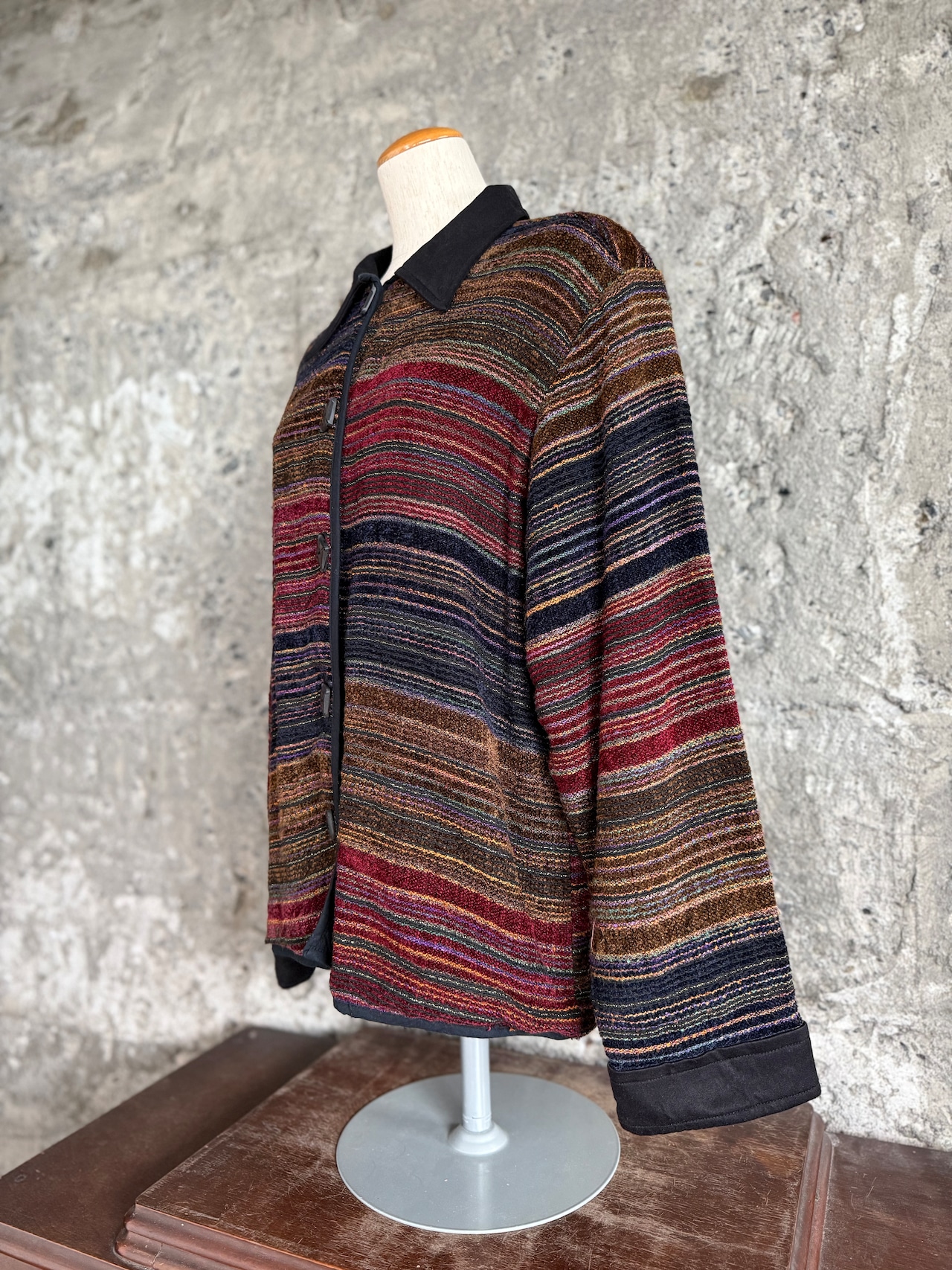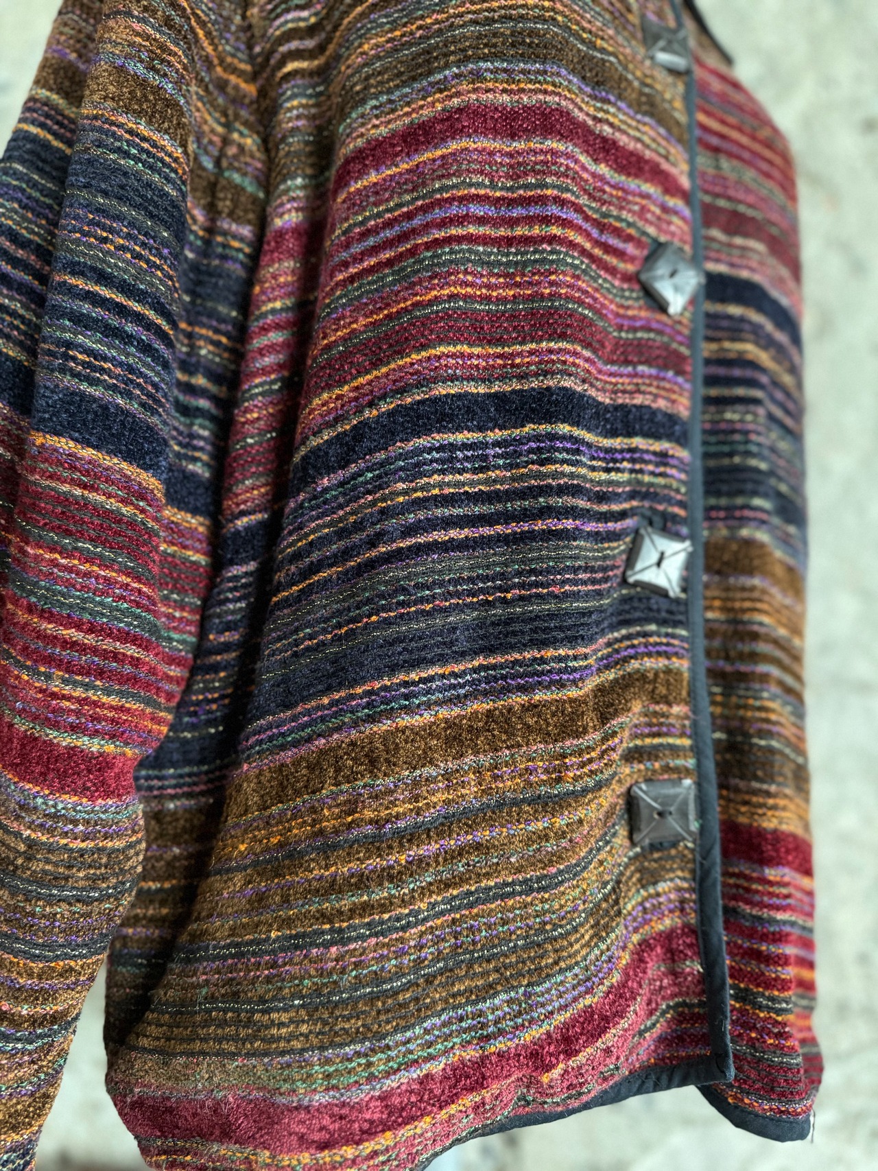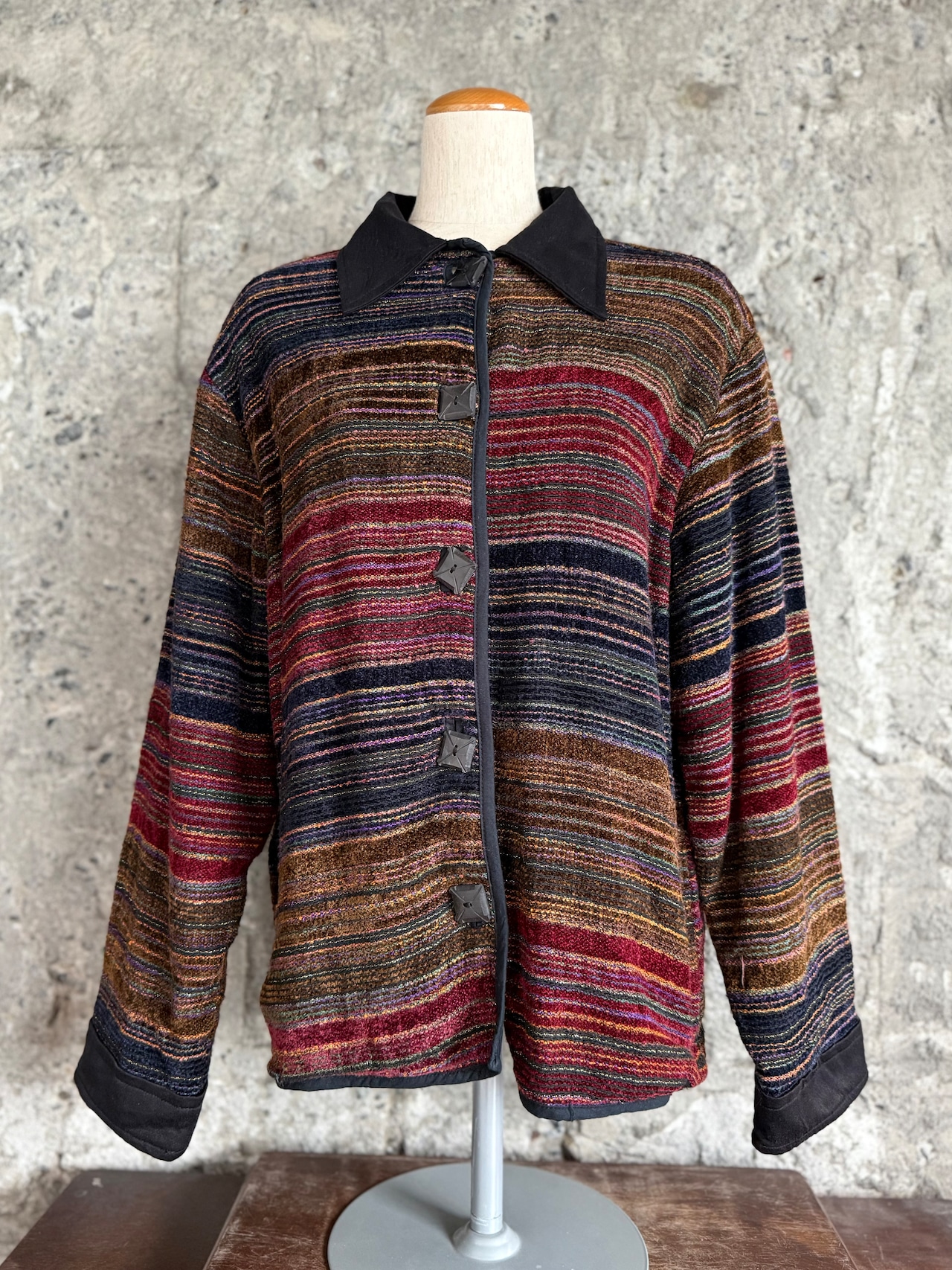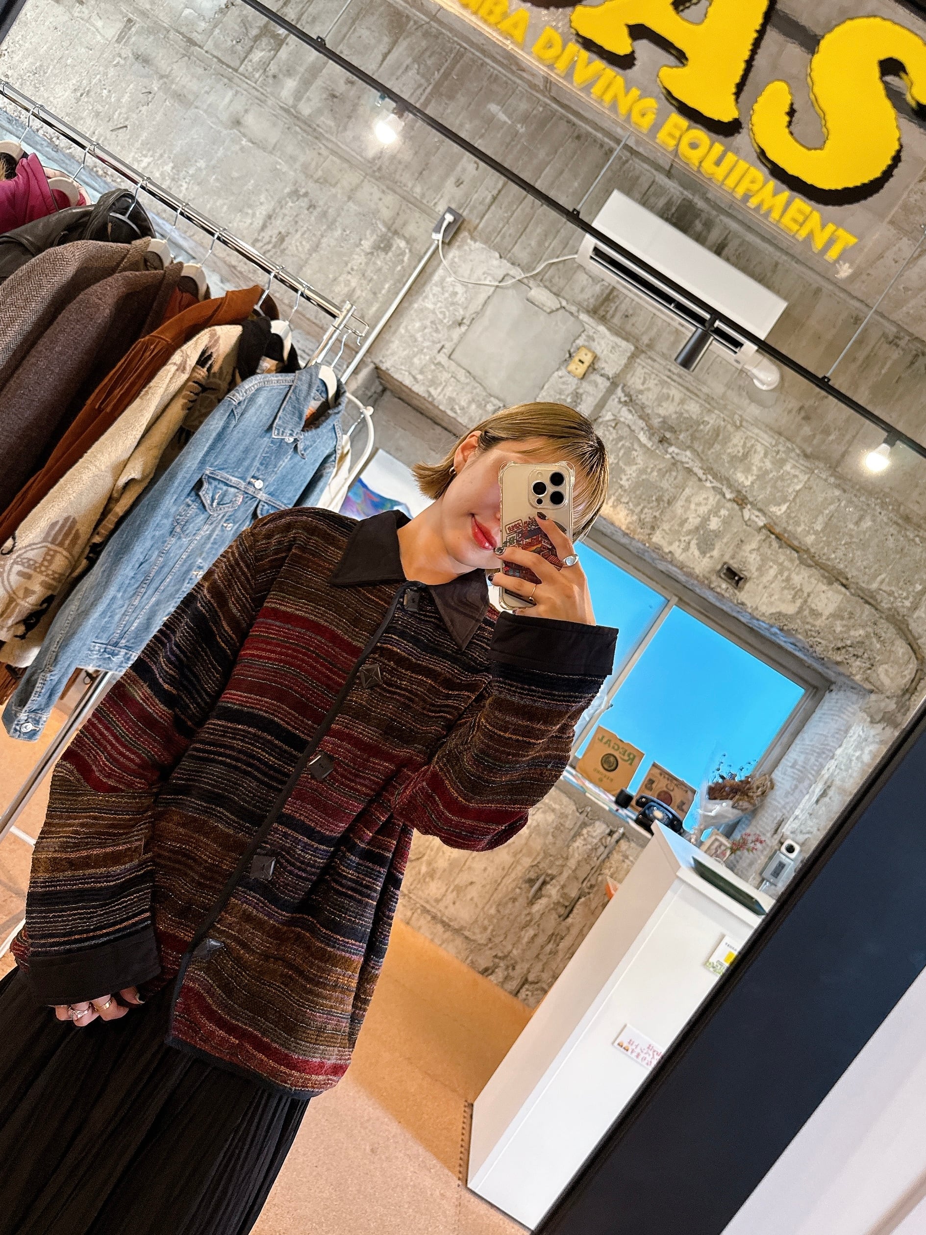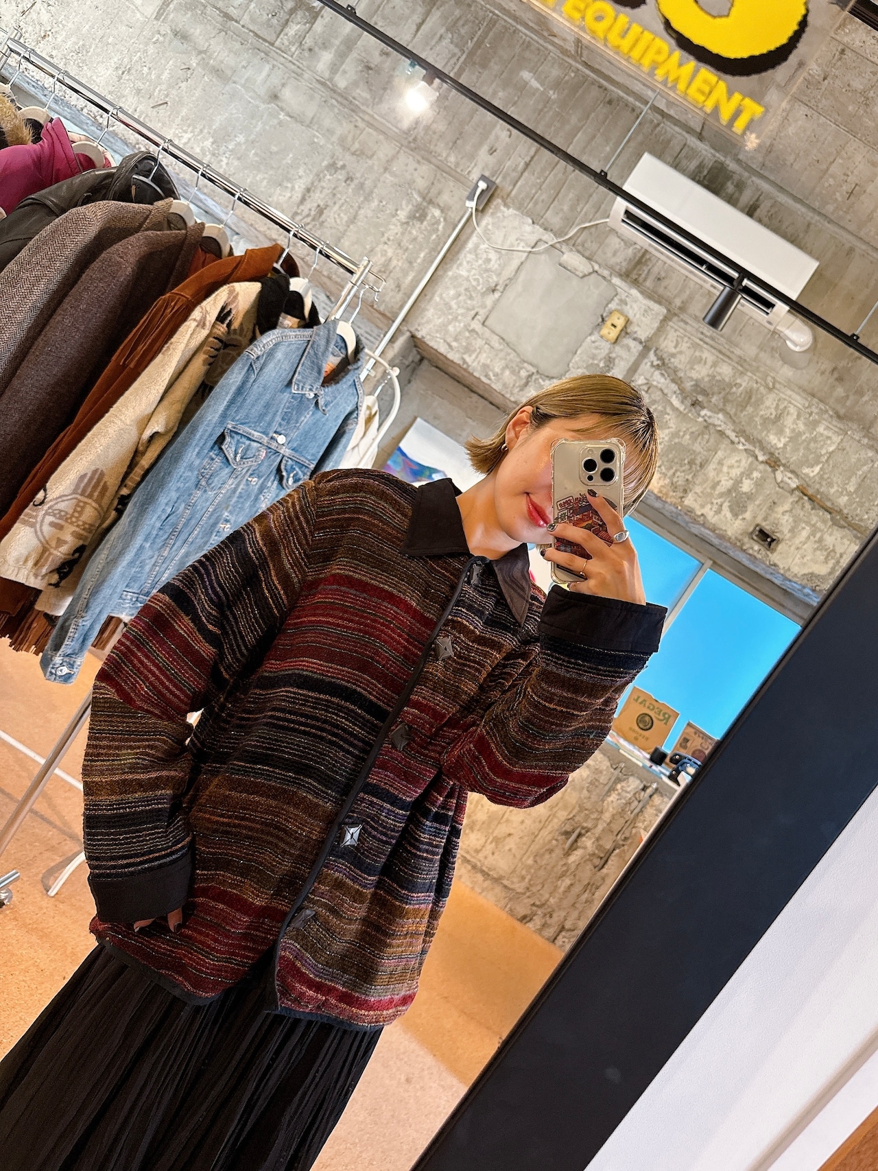 深みのあるマルチカラーに、ラメ糸が織り込まれた華やかなヴィンテージジャケット。