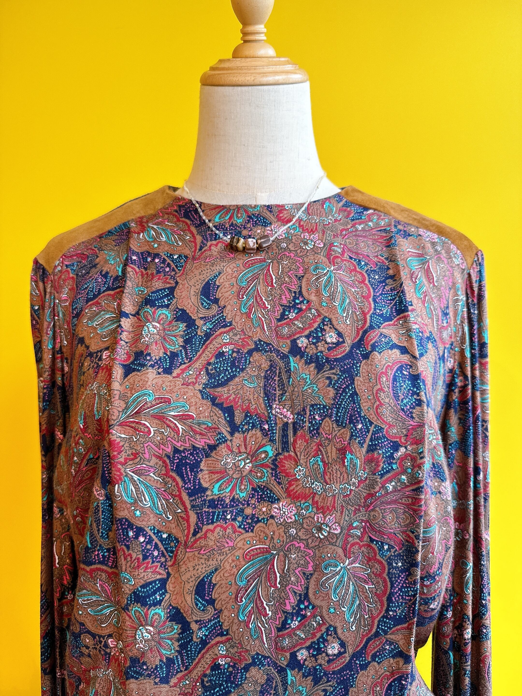 深みのあるボルドー×ネイビーを基調にしたクラシカルな総柄が魅力。