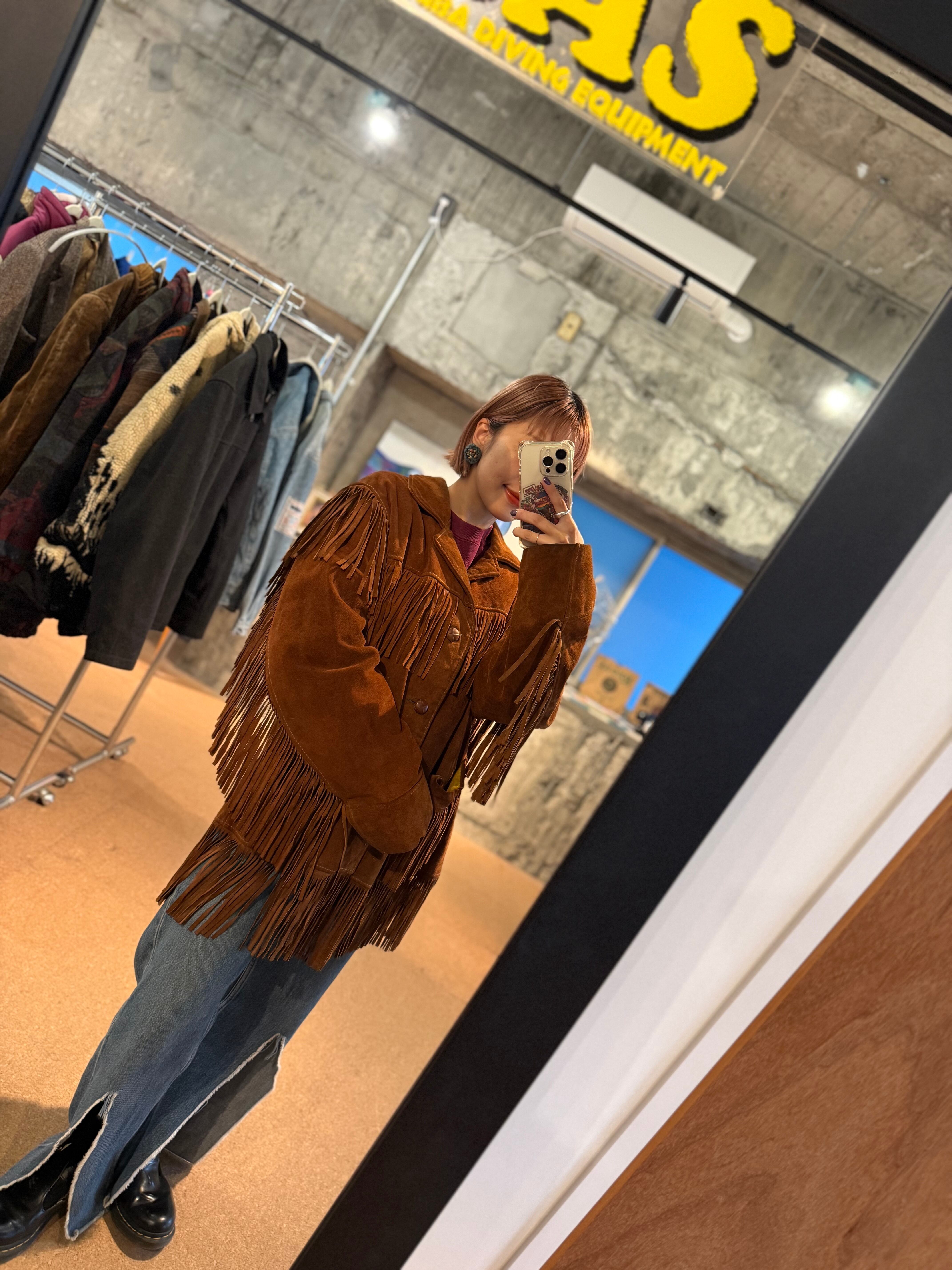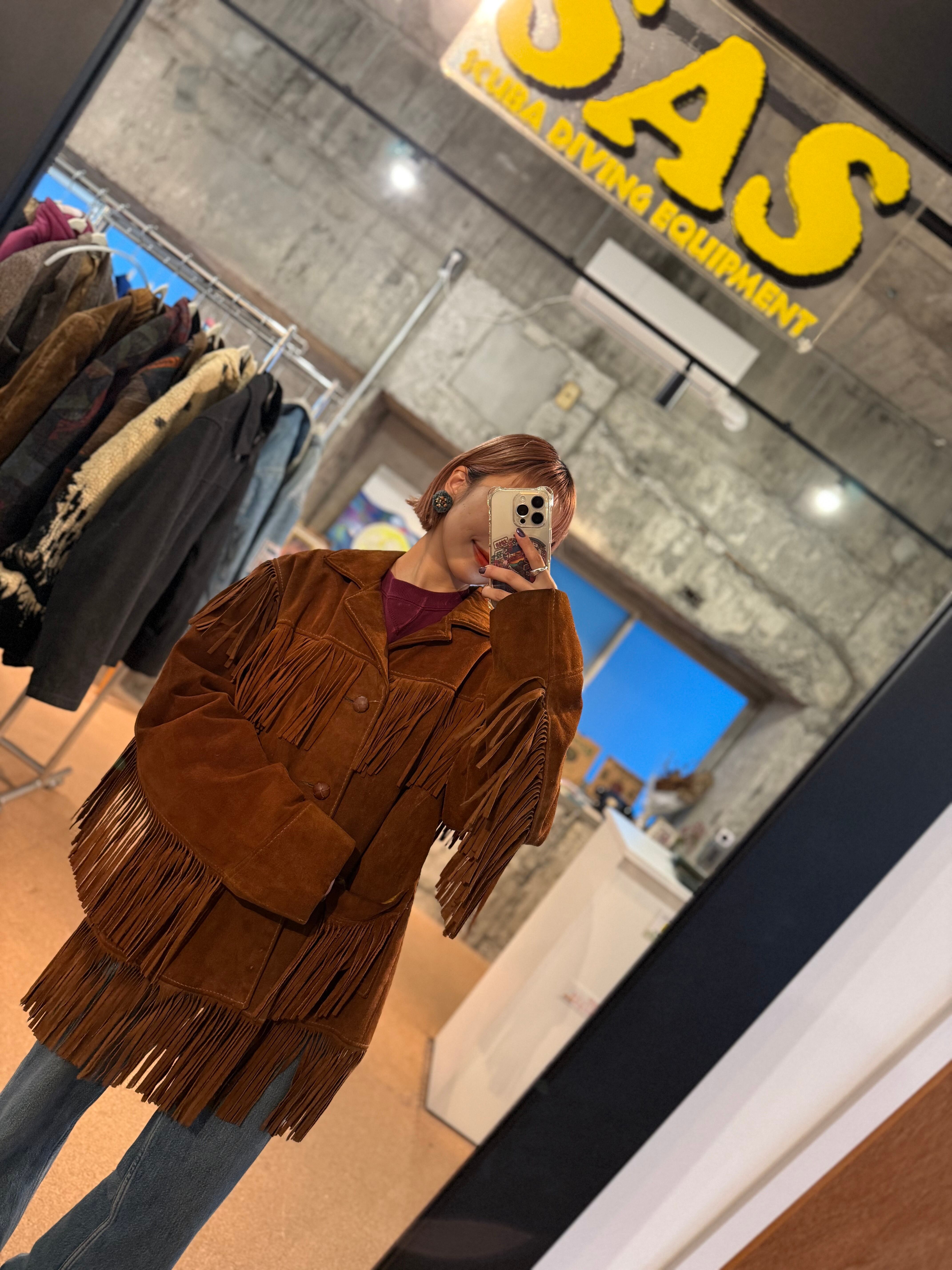 上質なスエードレザーに、肩・胸・ポケット・裾まで贅沢にあしらわれたフリンジが存在感抜群。