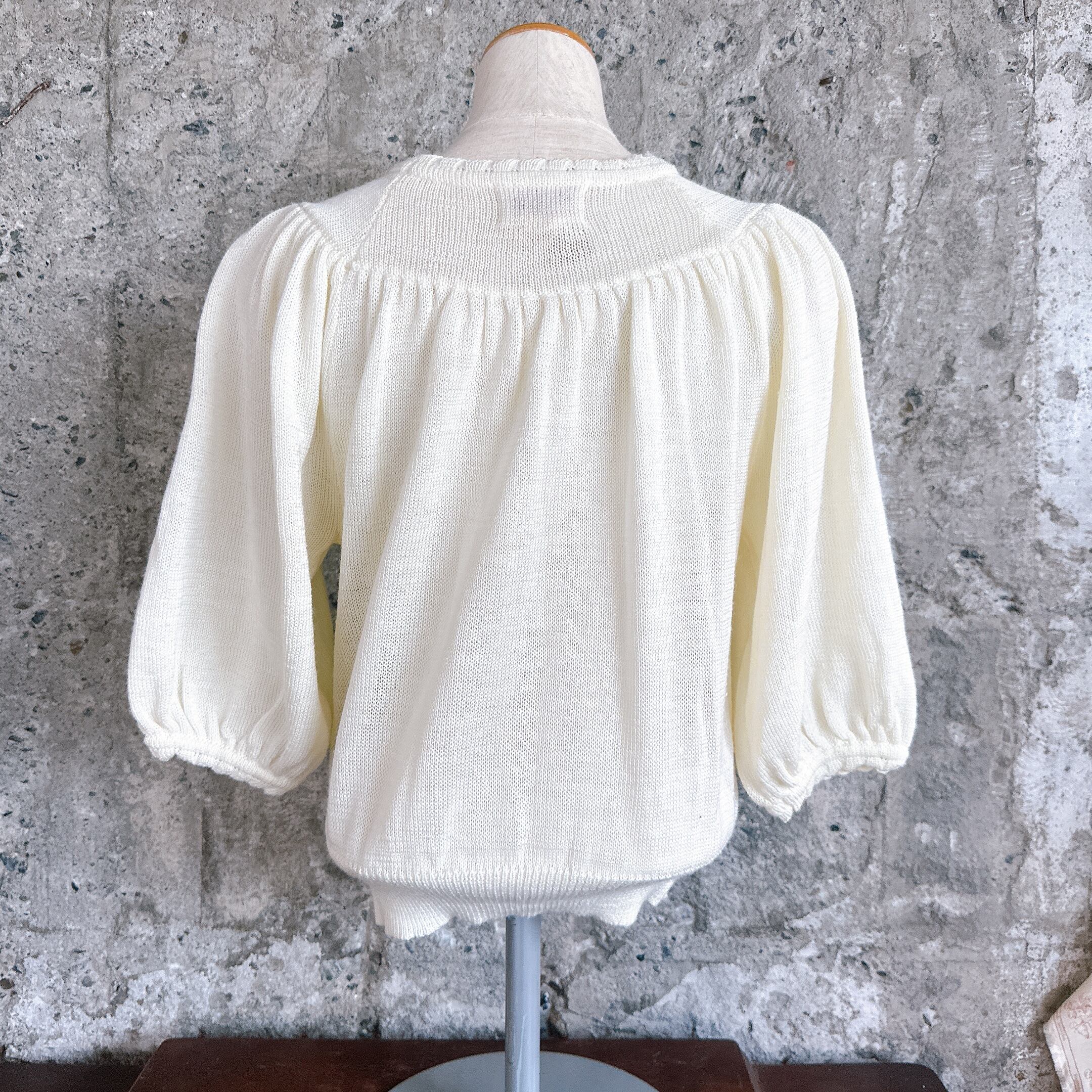 たっぷりギャザーの入ったパフスリーブと、裾&袖口のリブでシルエットもふんわり。