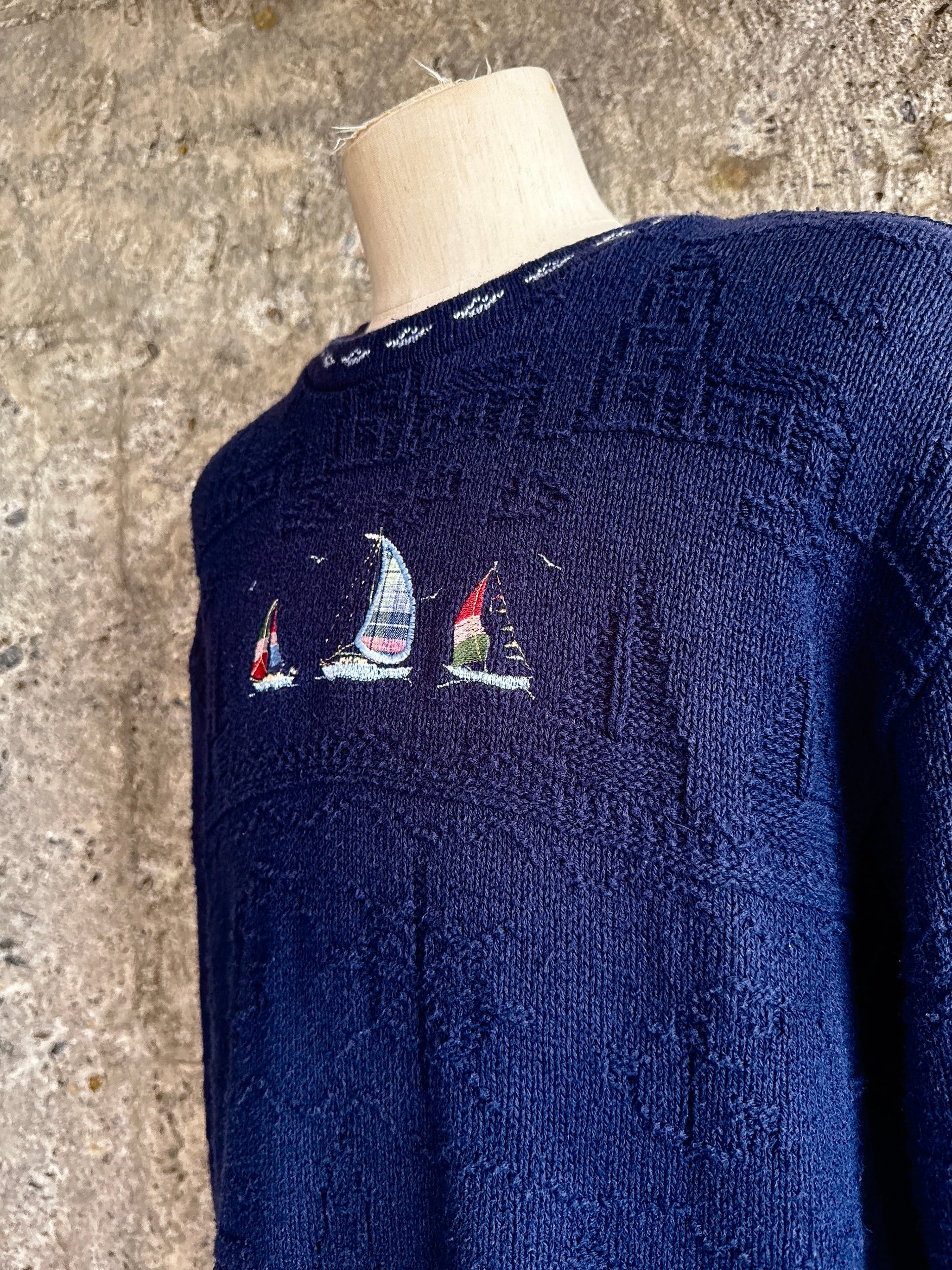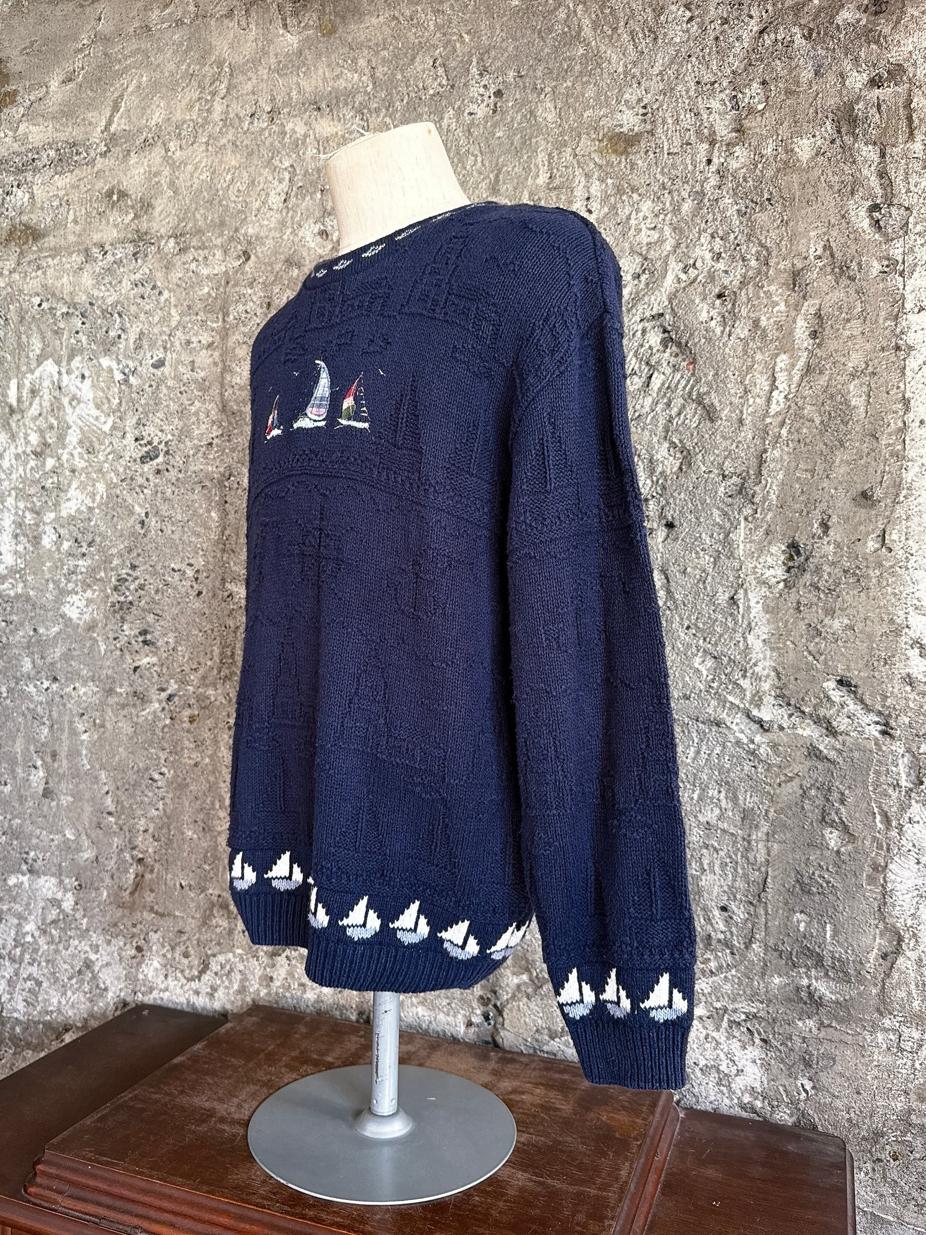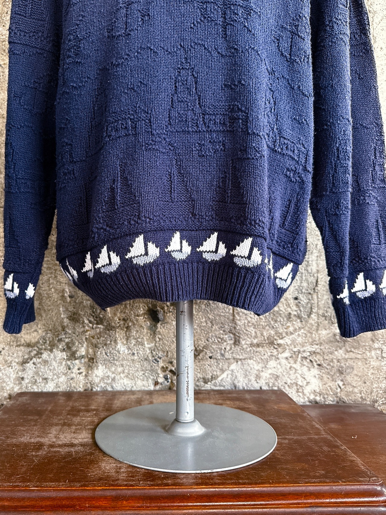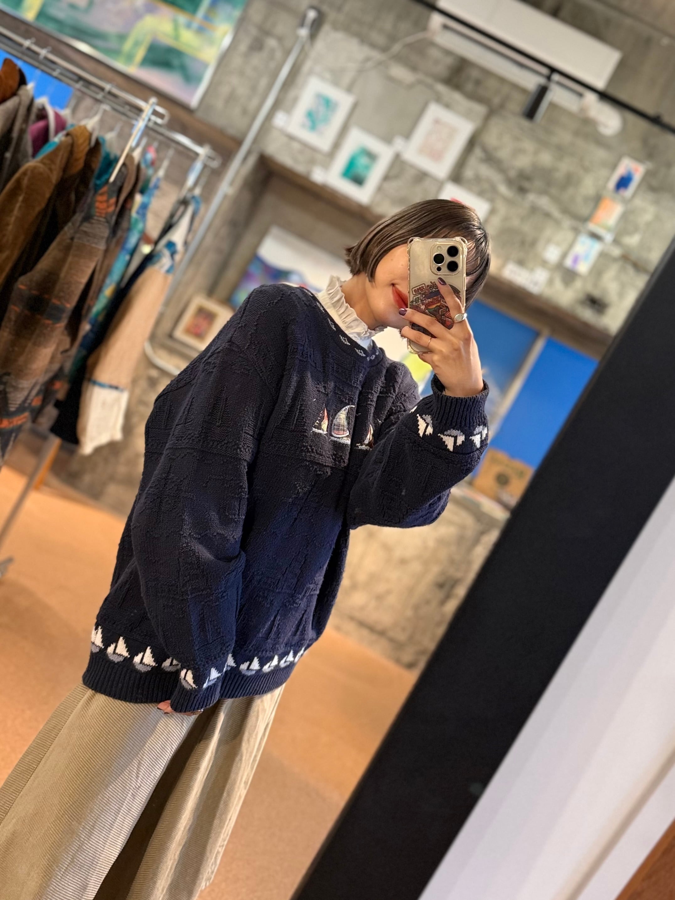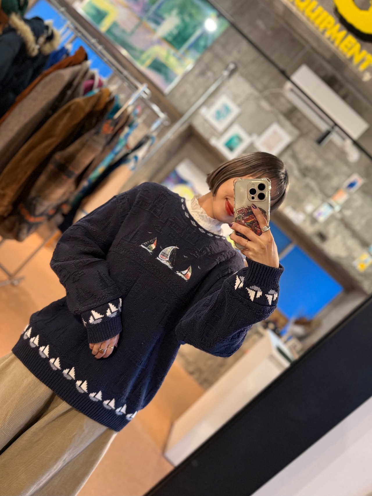 カナダ製「NORTHERN REFLECTIONS」のセイルボートモチーフニット。