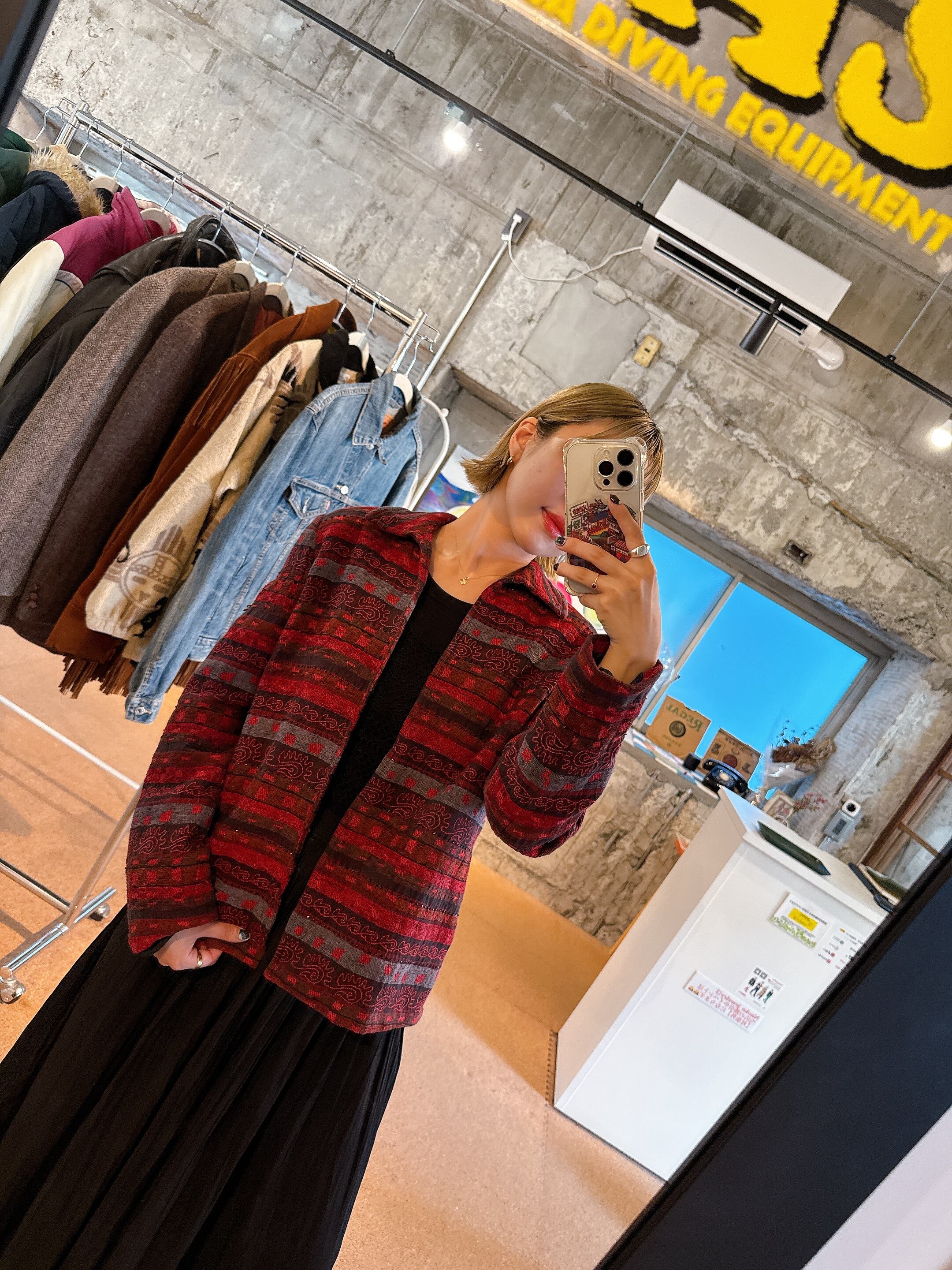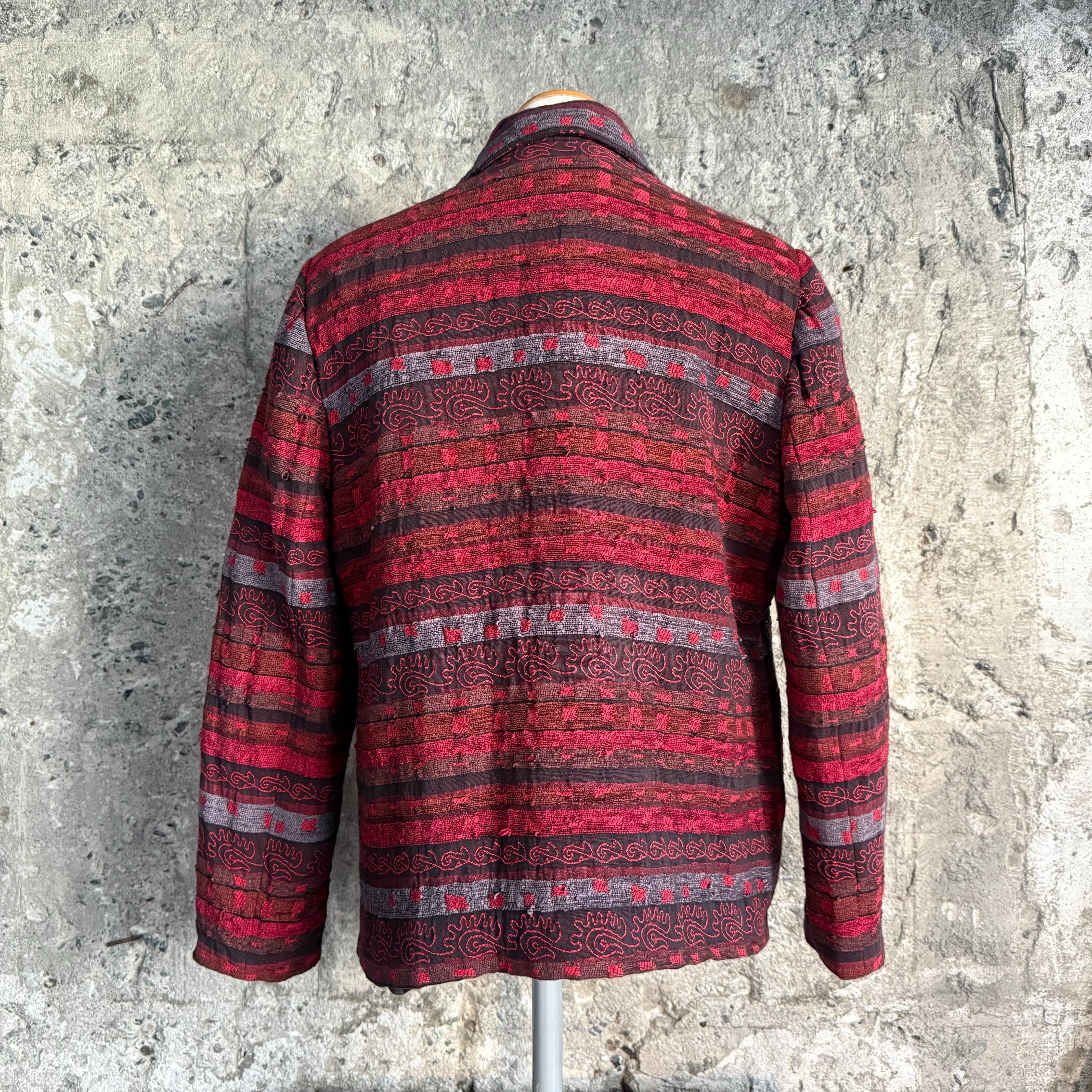 レッド×グレー ジオメトリックジャカード ジャケット