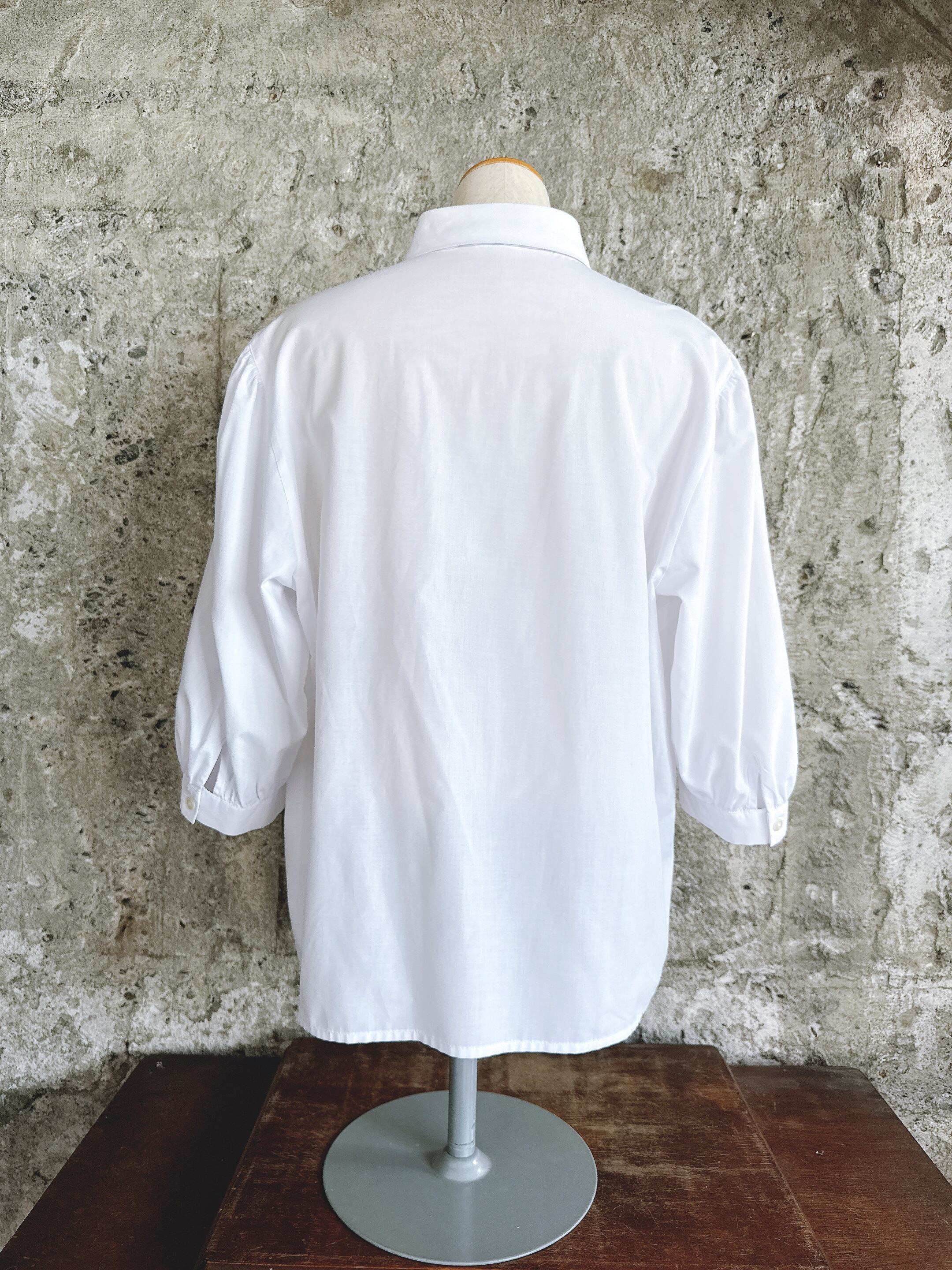 胸元一面にスカラップ刺繍レースが施された、上品なホワイトブラウス。