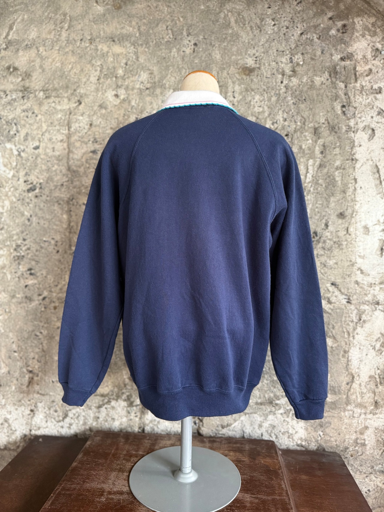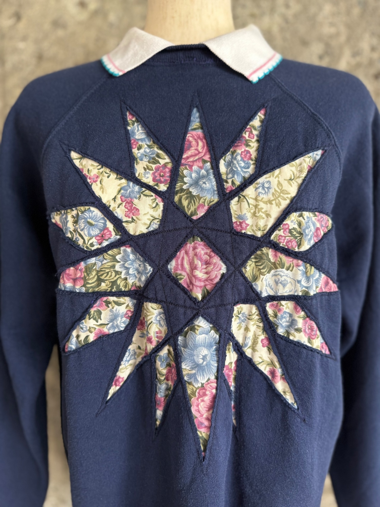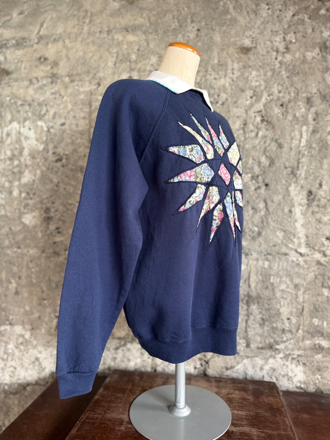 フラワーパッチワーク ネイビー スウェット トレーナー