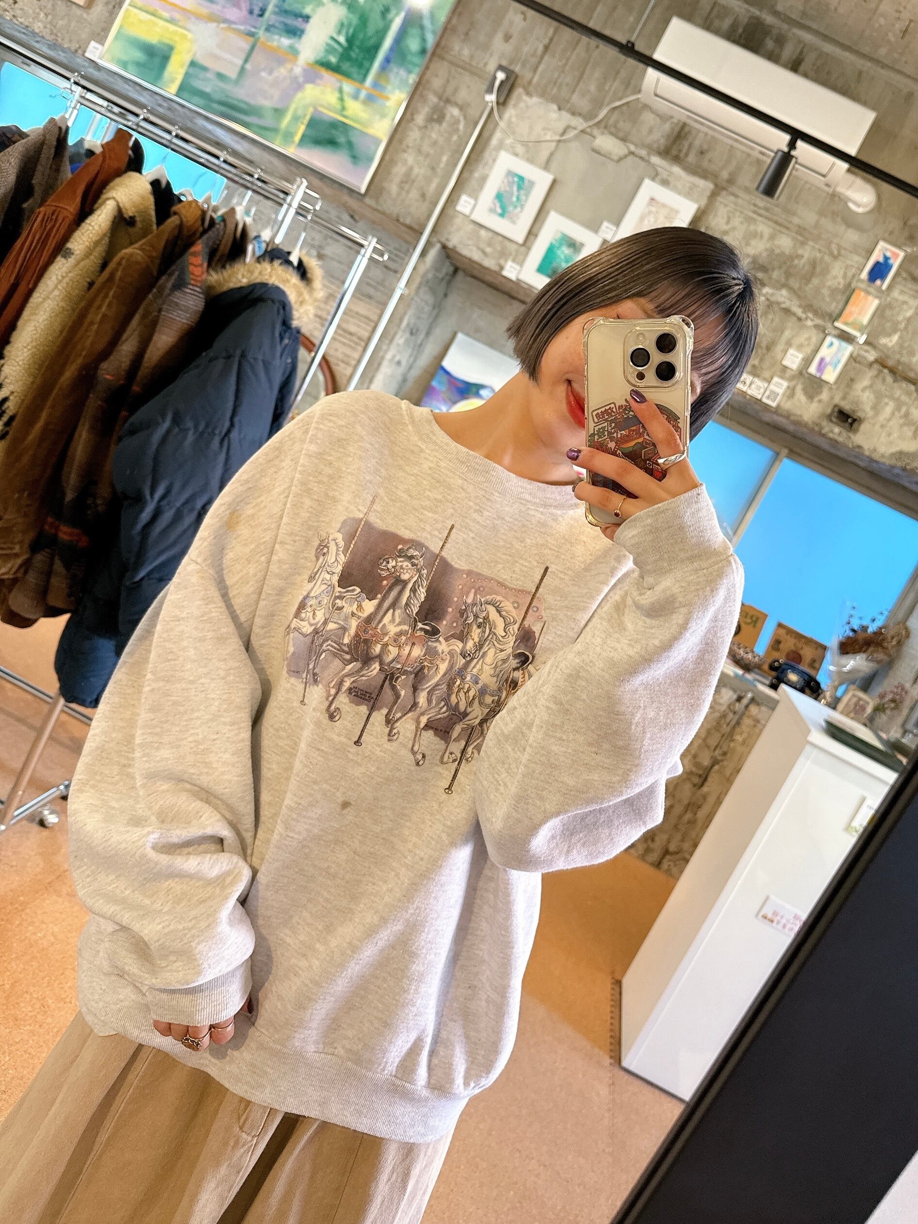 淡いグレーにメリーゴーランドの馬たちが描かれた、ロマンチックで少しノスタルジックな一枚。