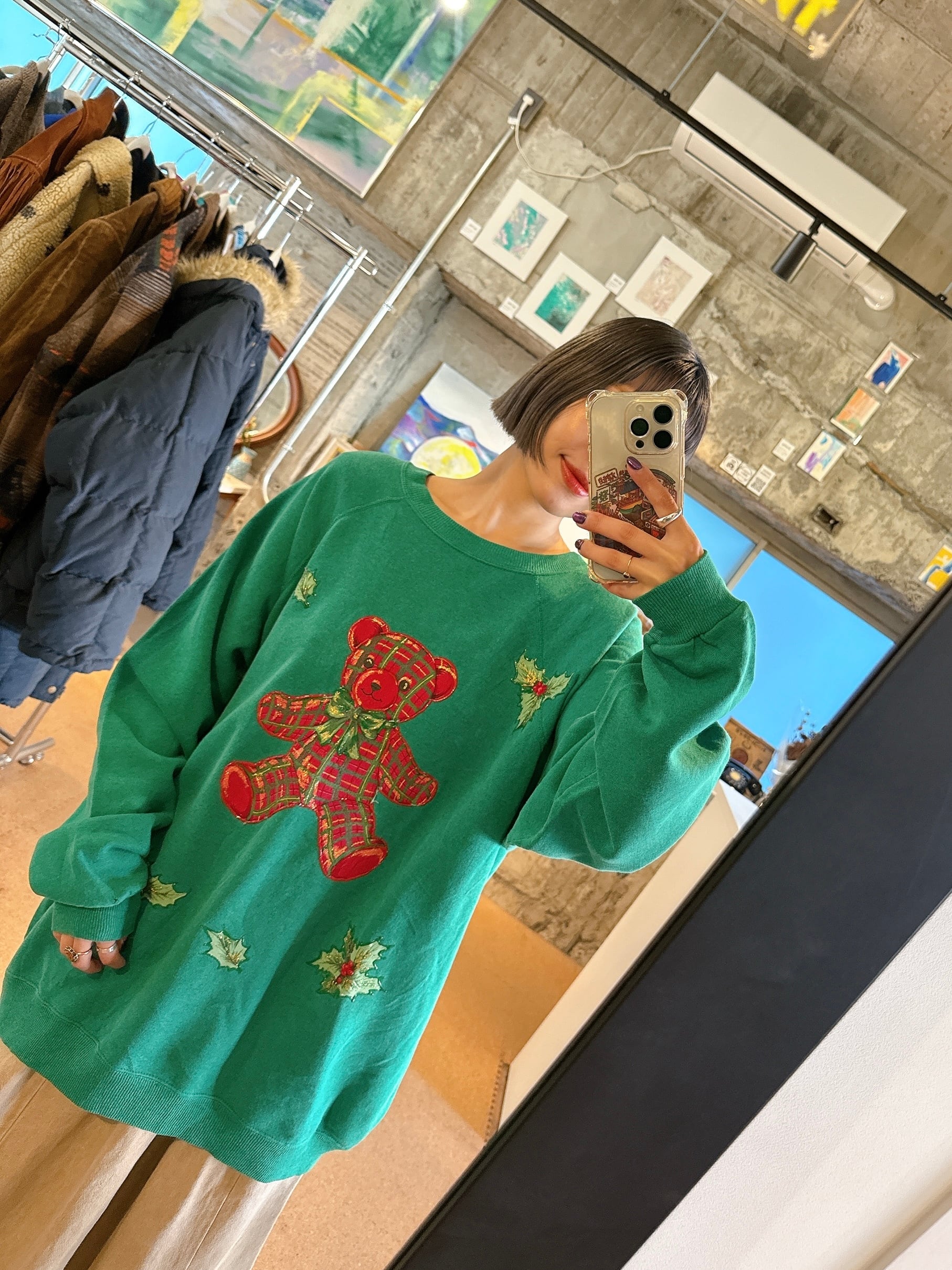 Hanes Her Way USA製 テディベア クリスマススウェット