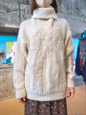 モヘアタッチ 花刺繍 タートル ニットプルオーバー