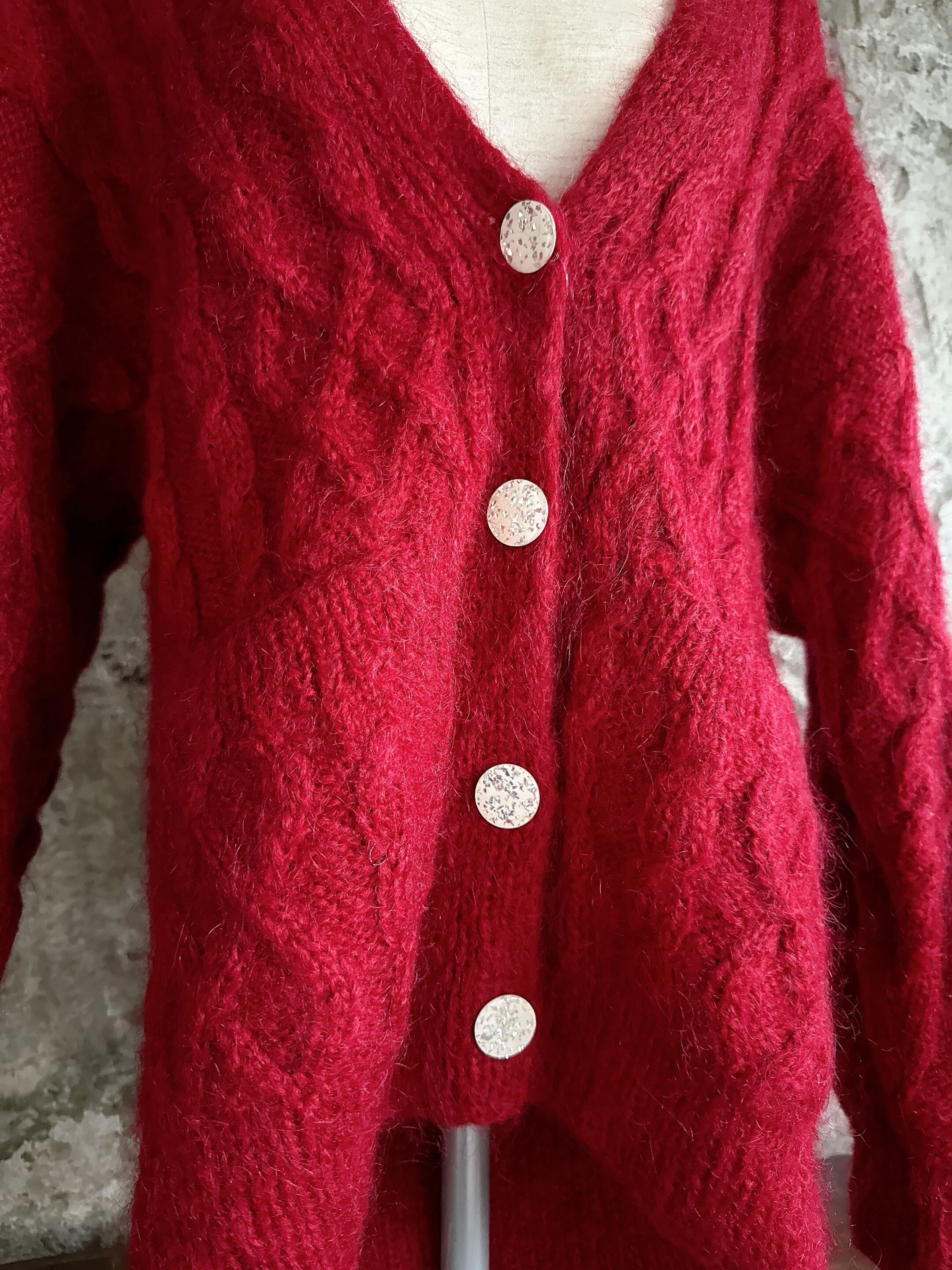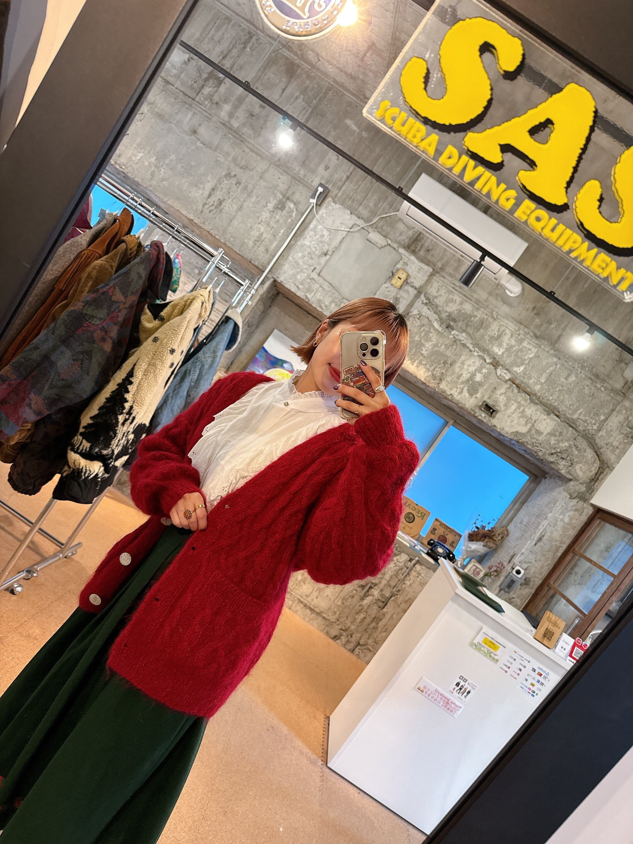 深みのあるレッドカラーが目を惹く、ニットカーディガン。