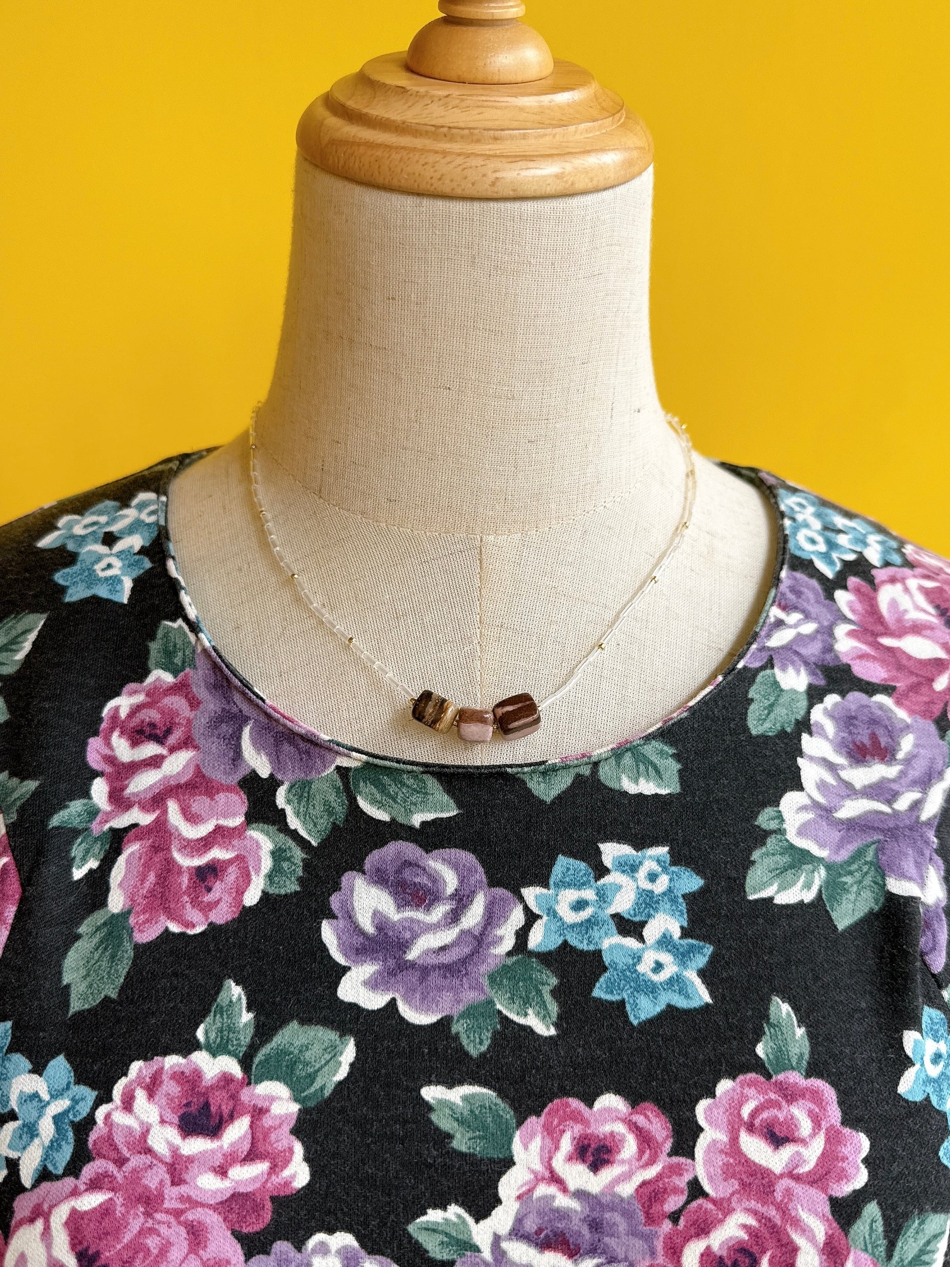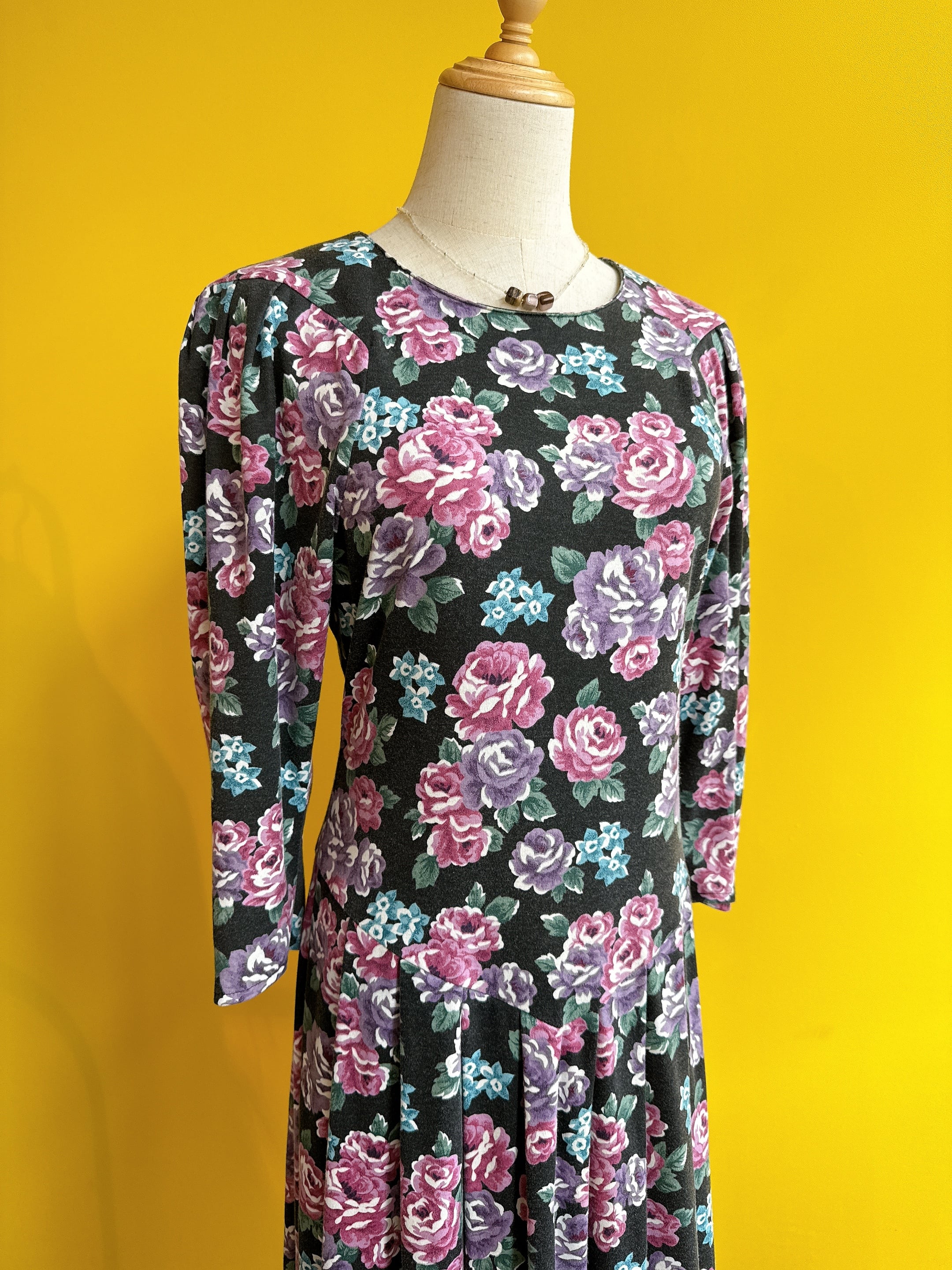 落ち着いたトーンのピンク・パープル・ブルーの花柄が
