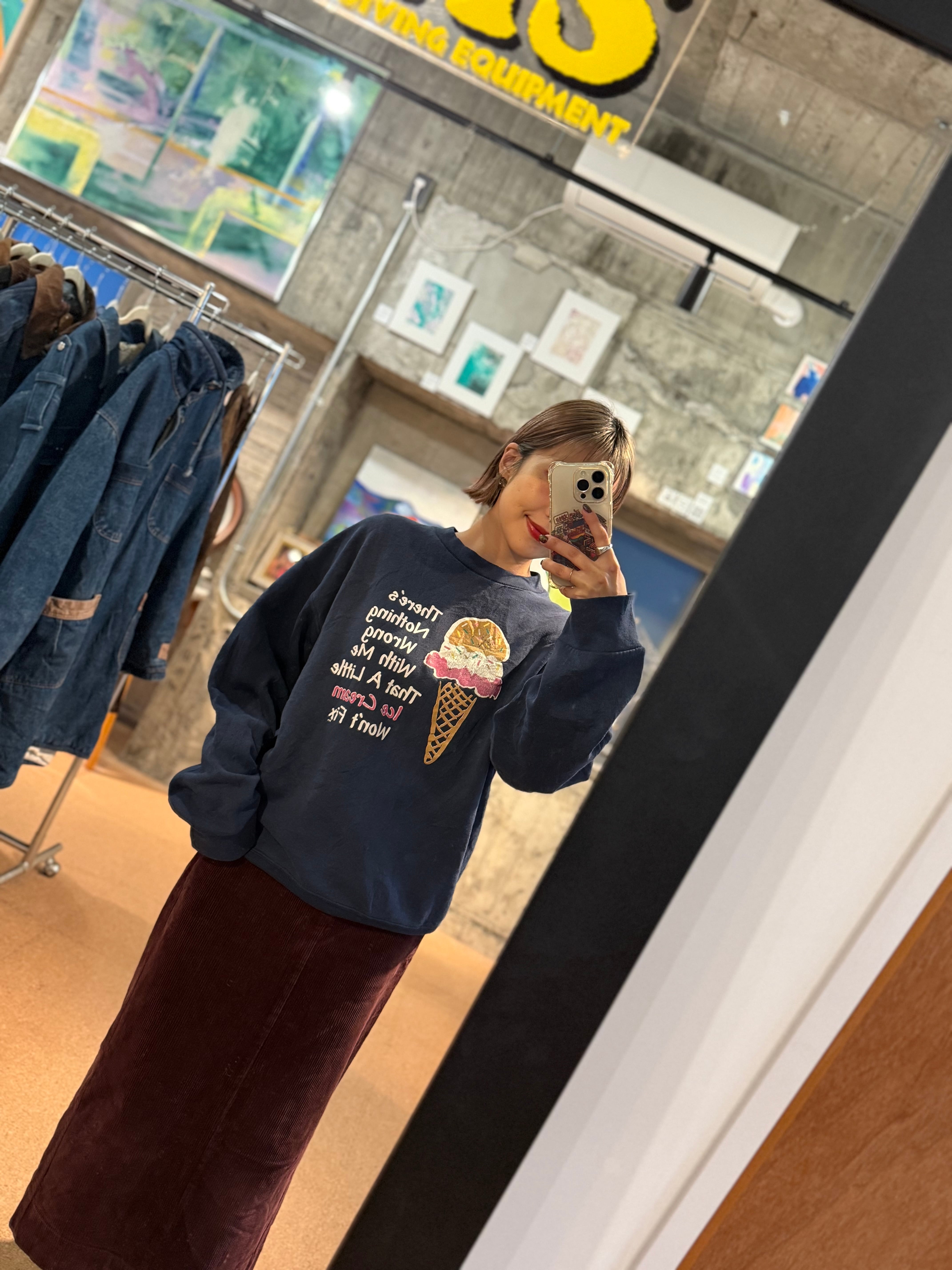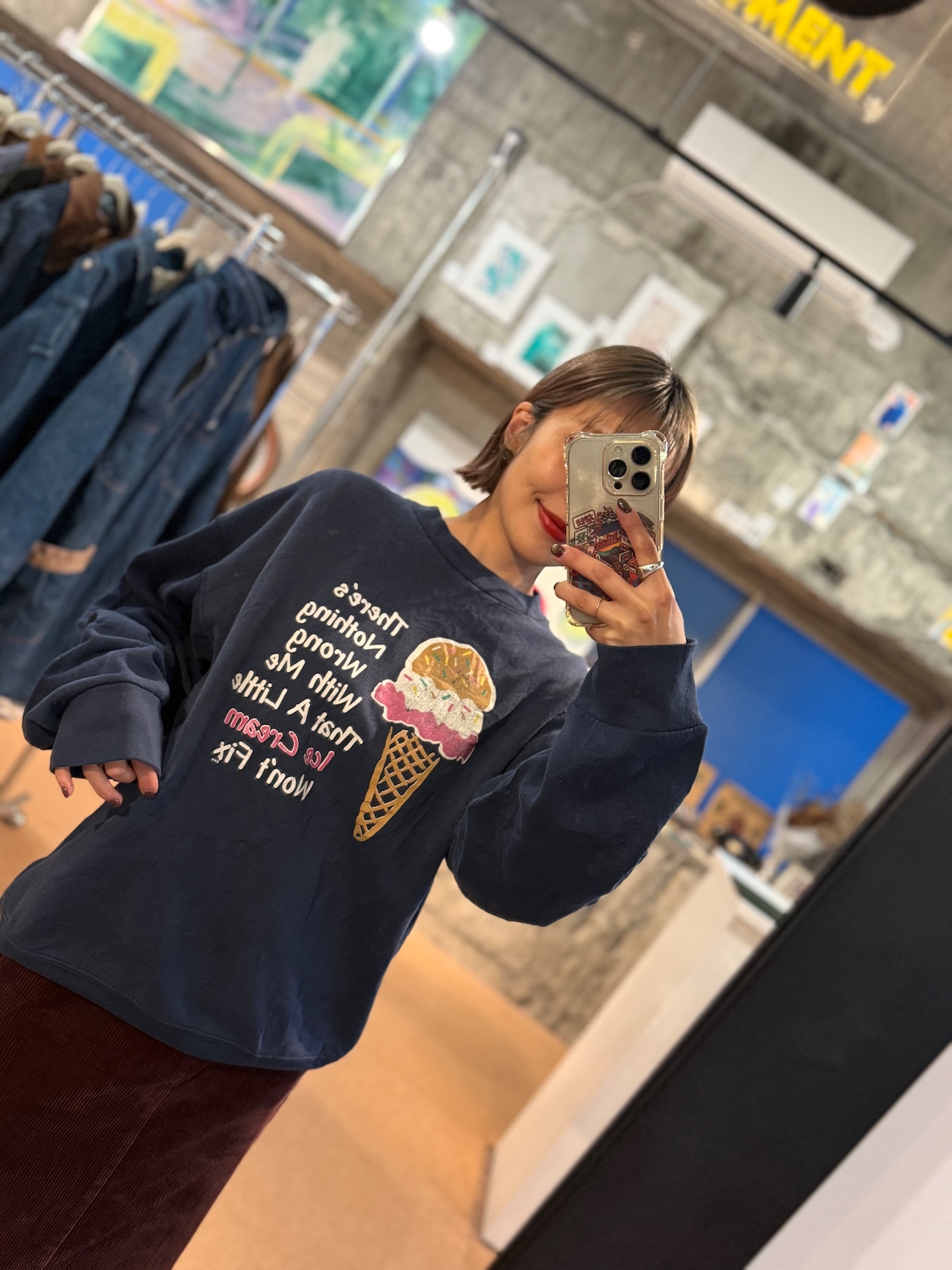 “Ice Cream” メッセージプリント スウェットプルオーバー