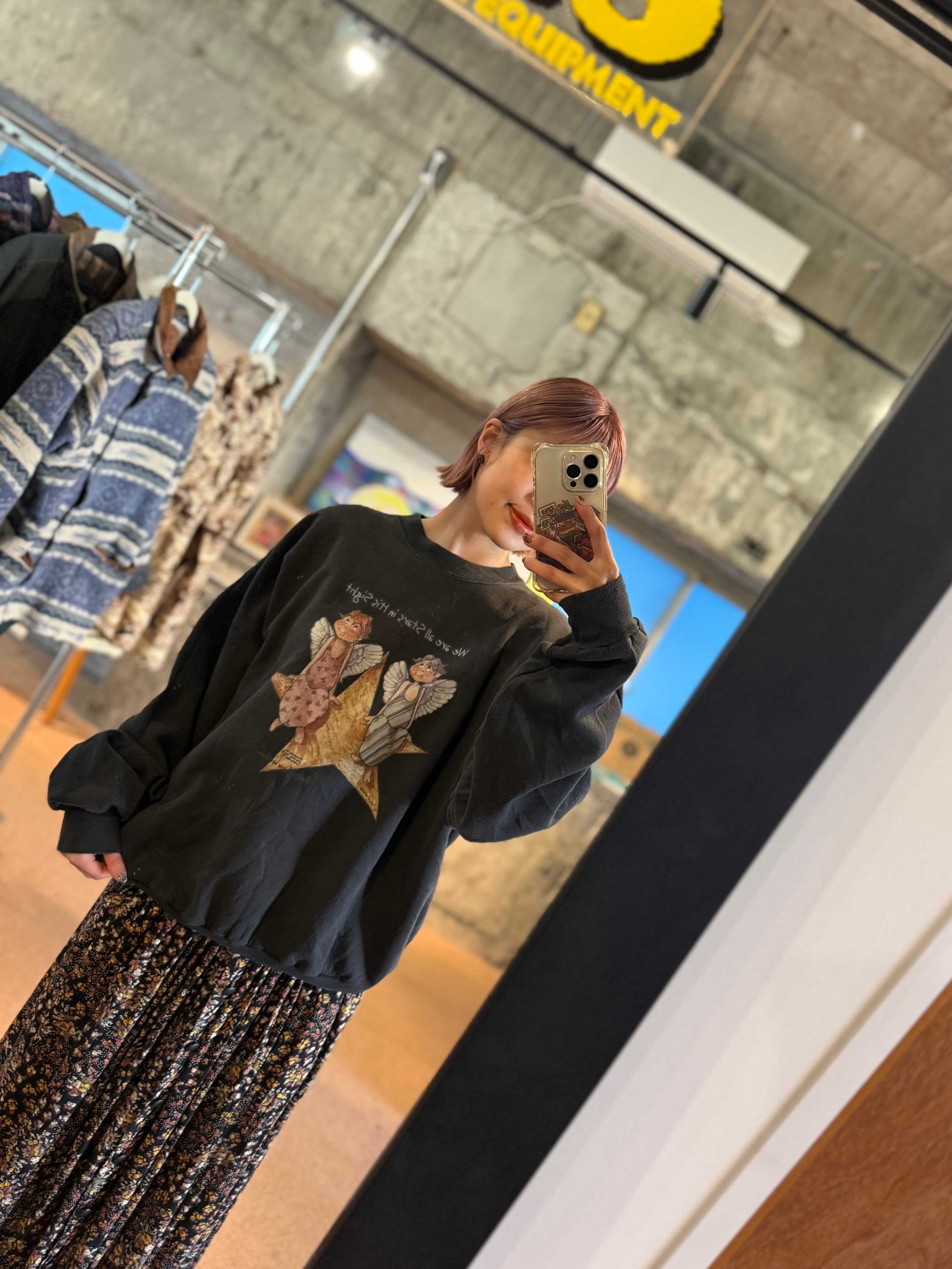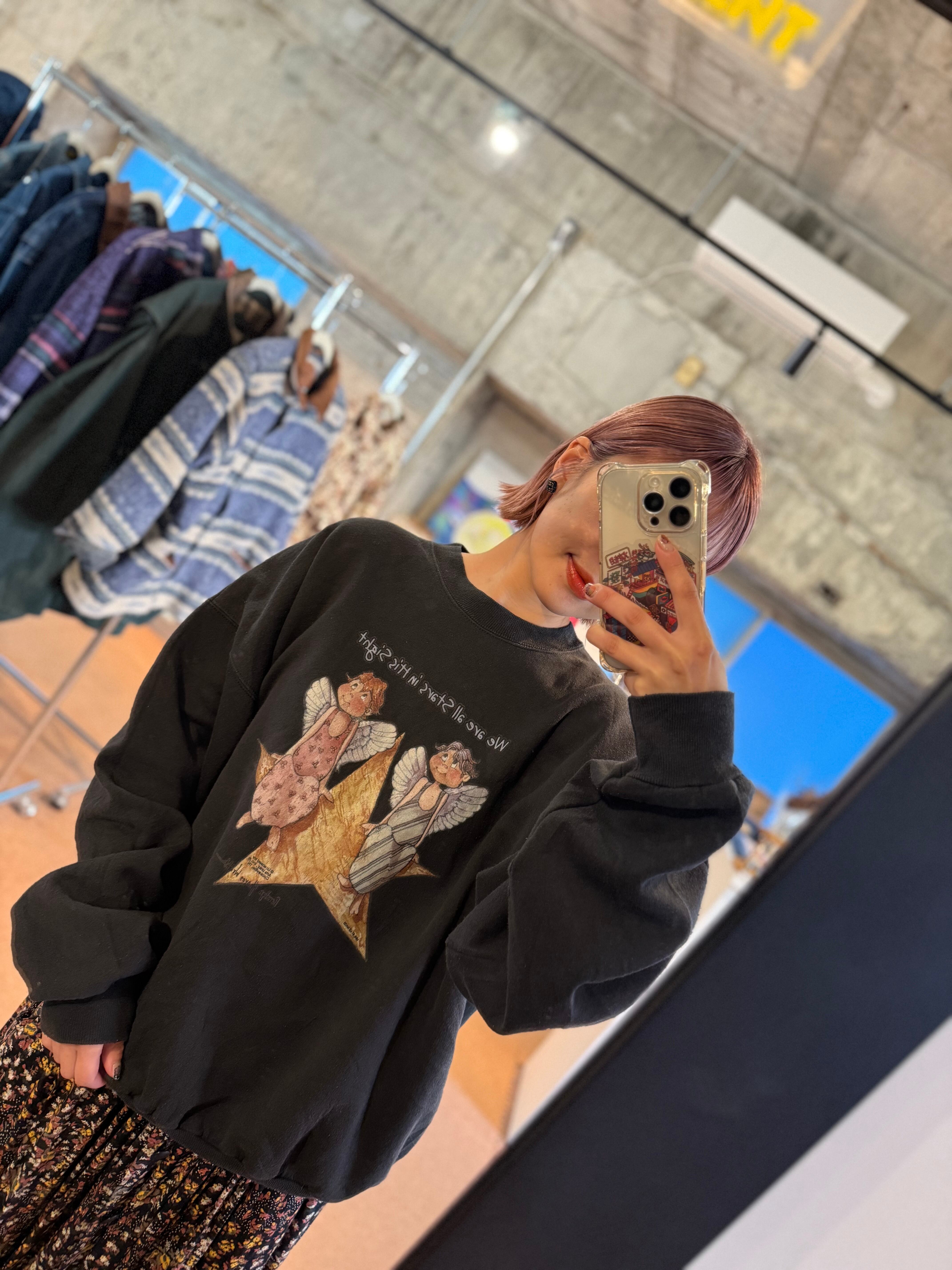 ブラックボディに、星の上にちょこんと座る2人のエンジェルが描かれた、どこかあたたかくて優しい空気感のある一枚。