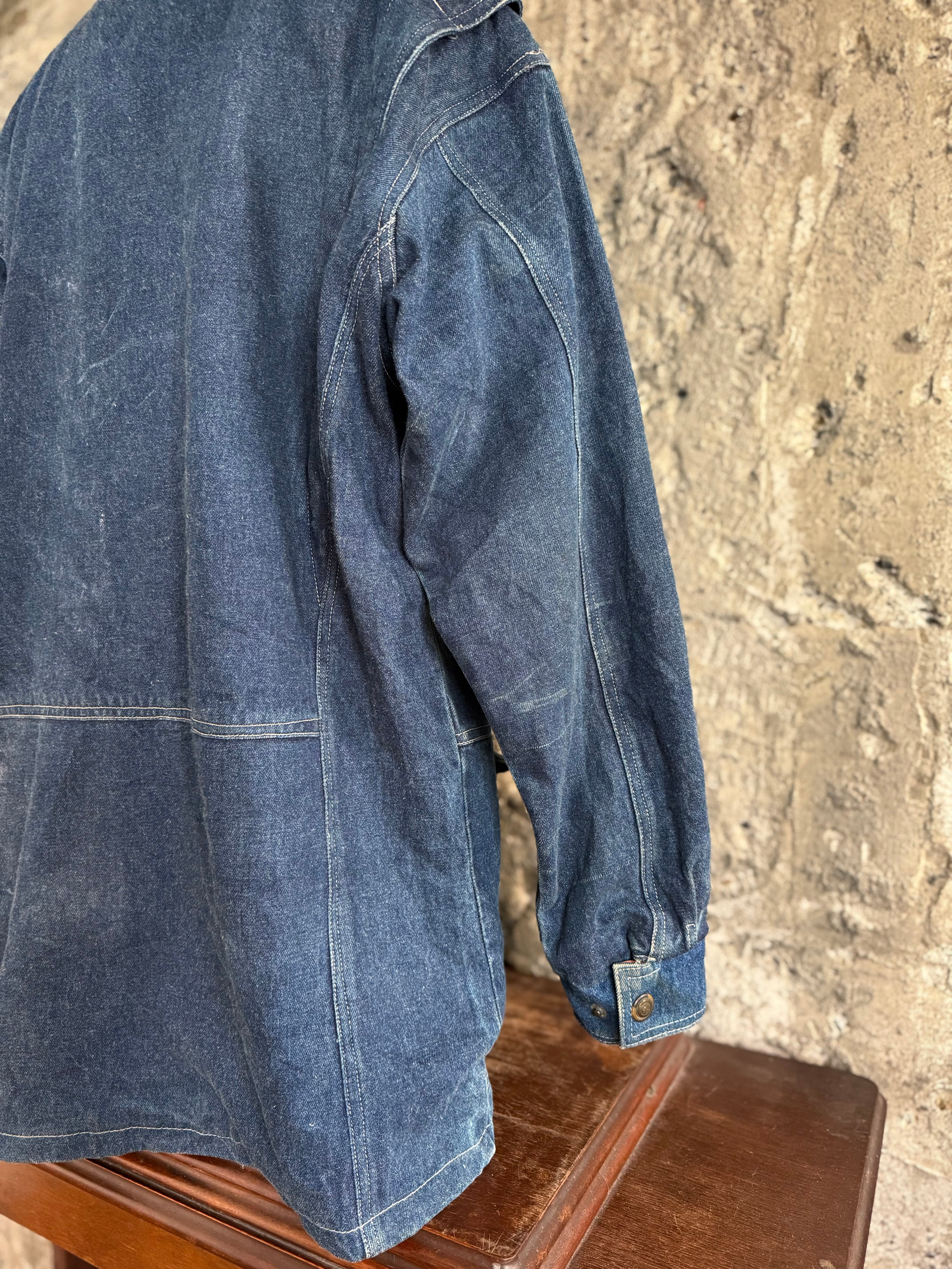ワークウェア由来のデザインを街着に落とし込んだ、カバーオールタイプのデニムジャケット。