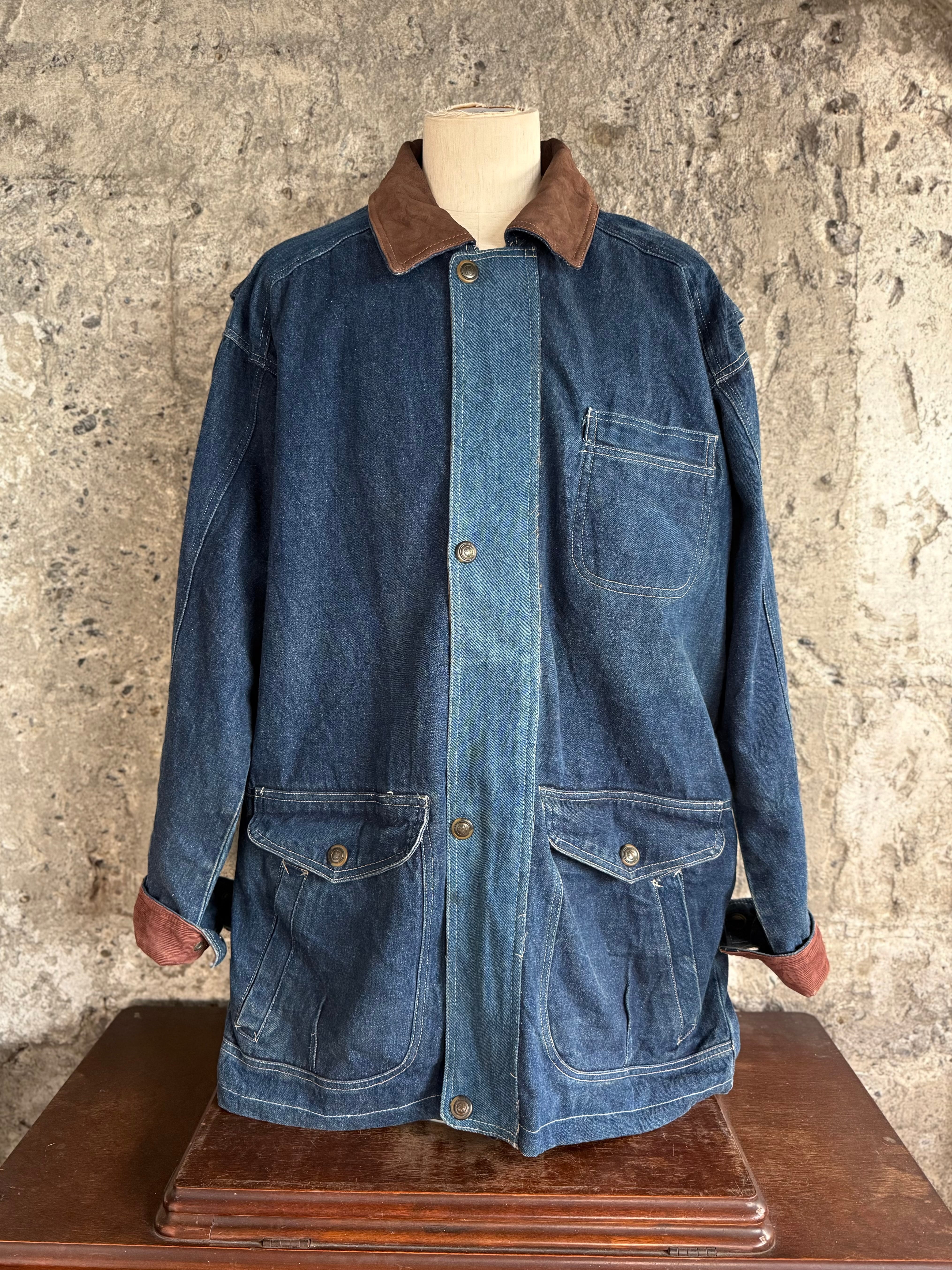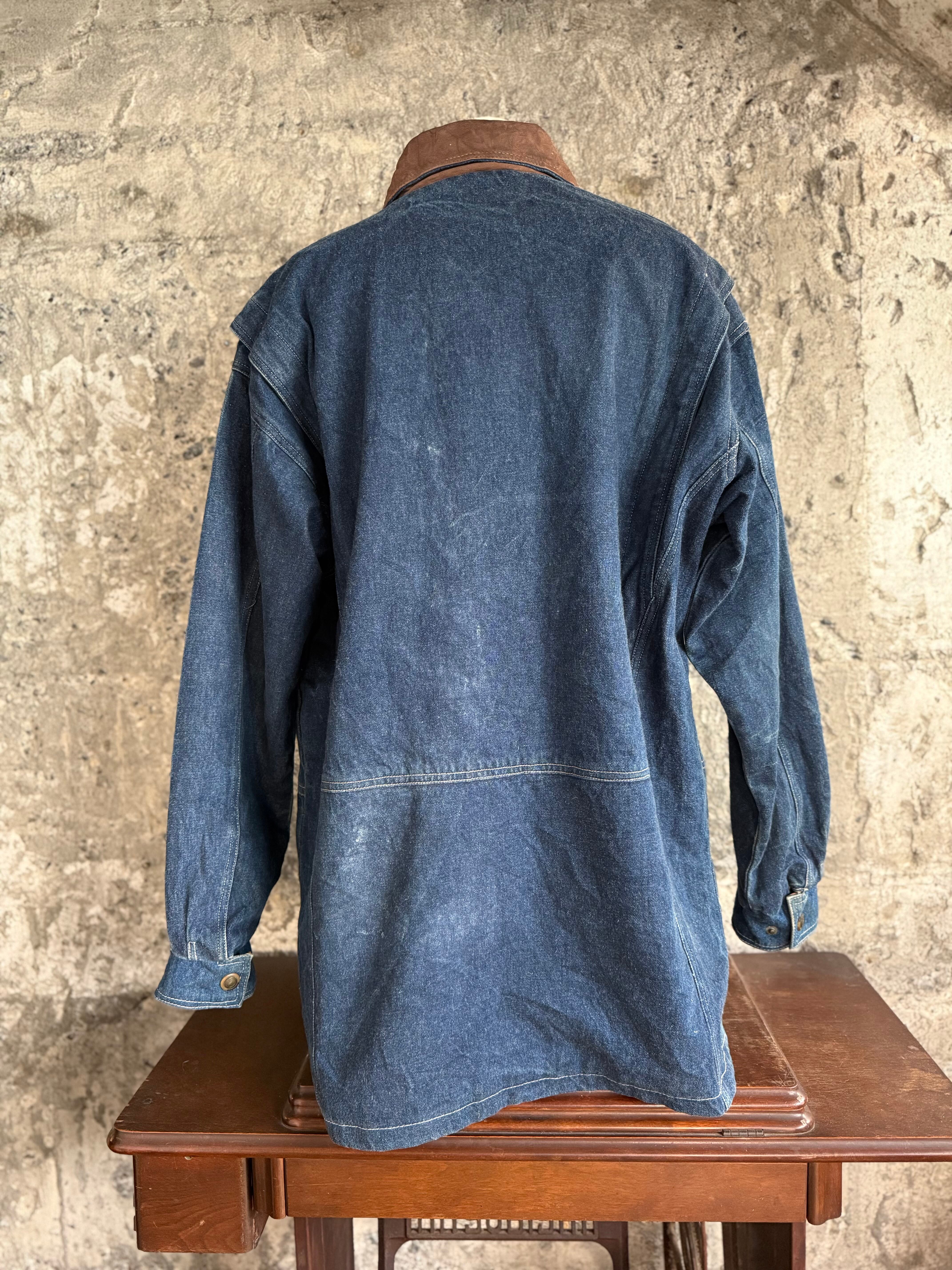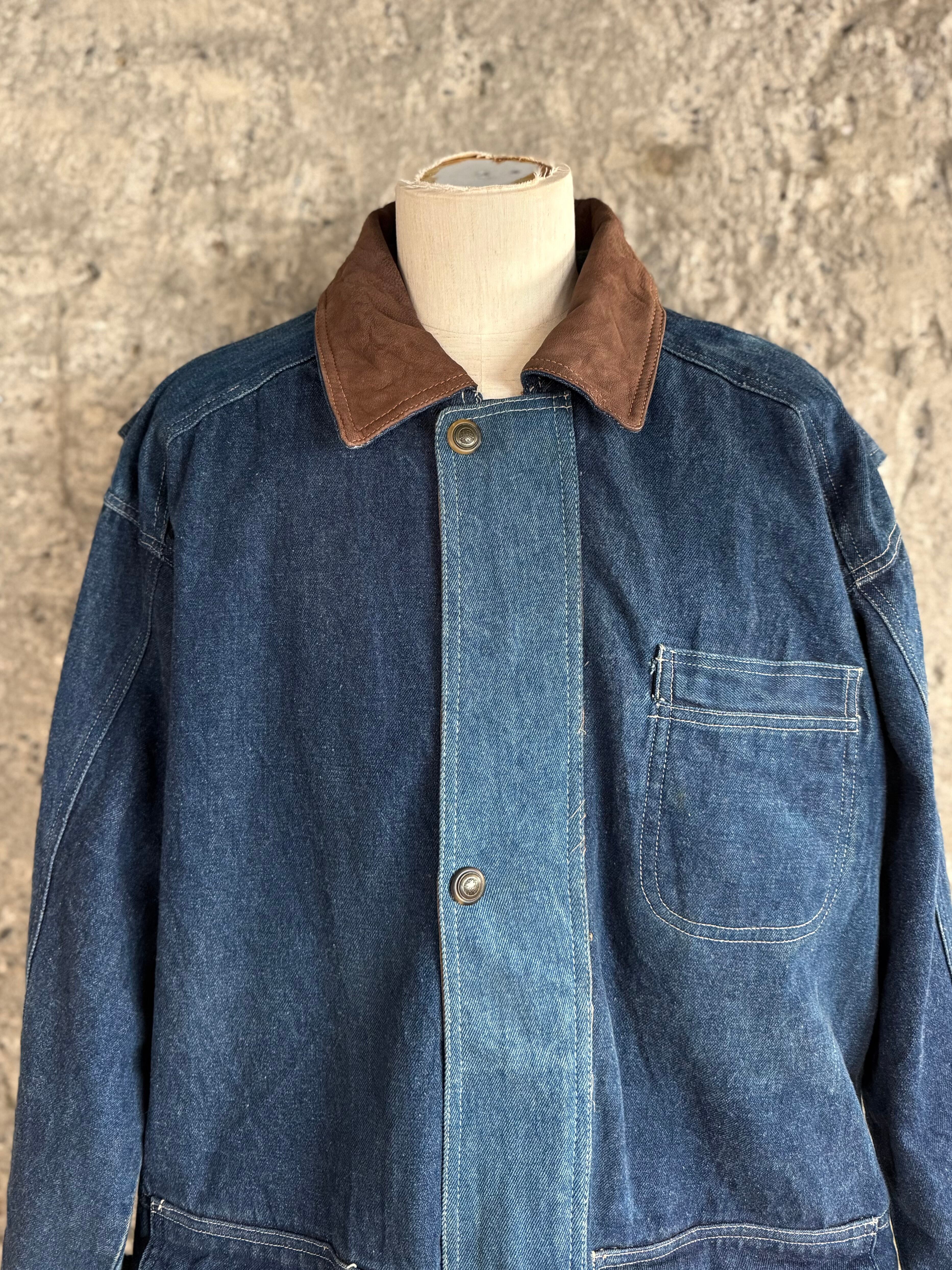 しっかりとしたデニム生地に、襟元には本革(Genuine Leather)を使用。ラフな印象になりがちなデニムに、大人っぽさと品の良さをプラスしてくれます。