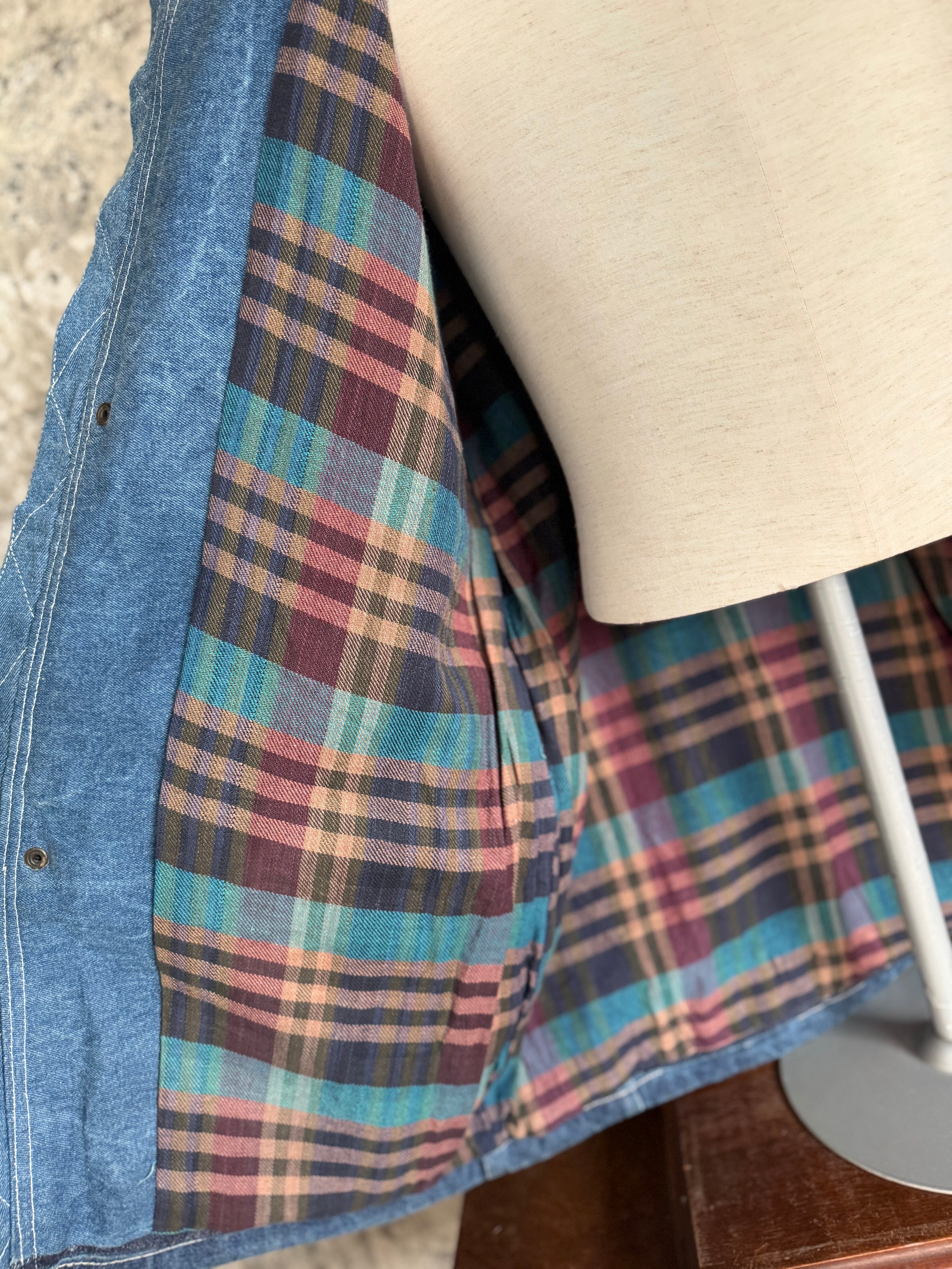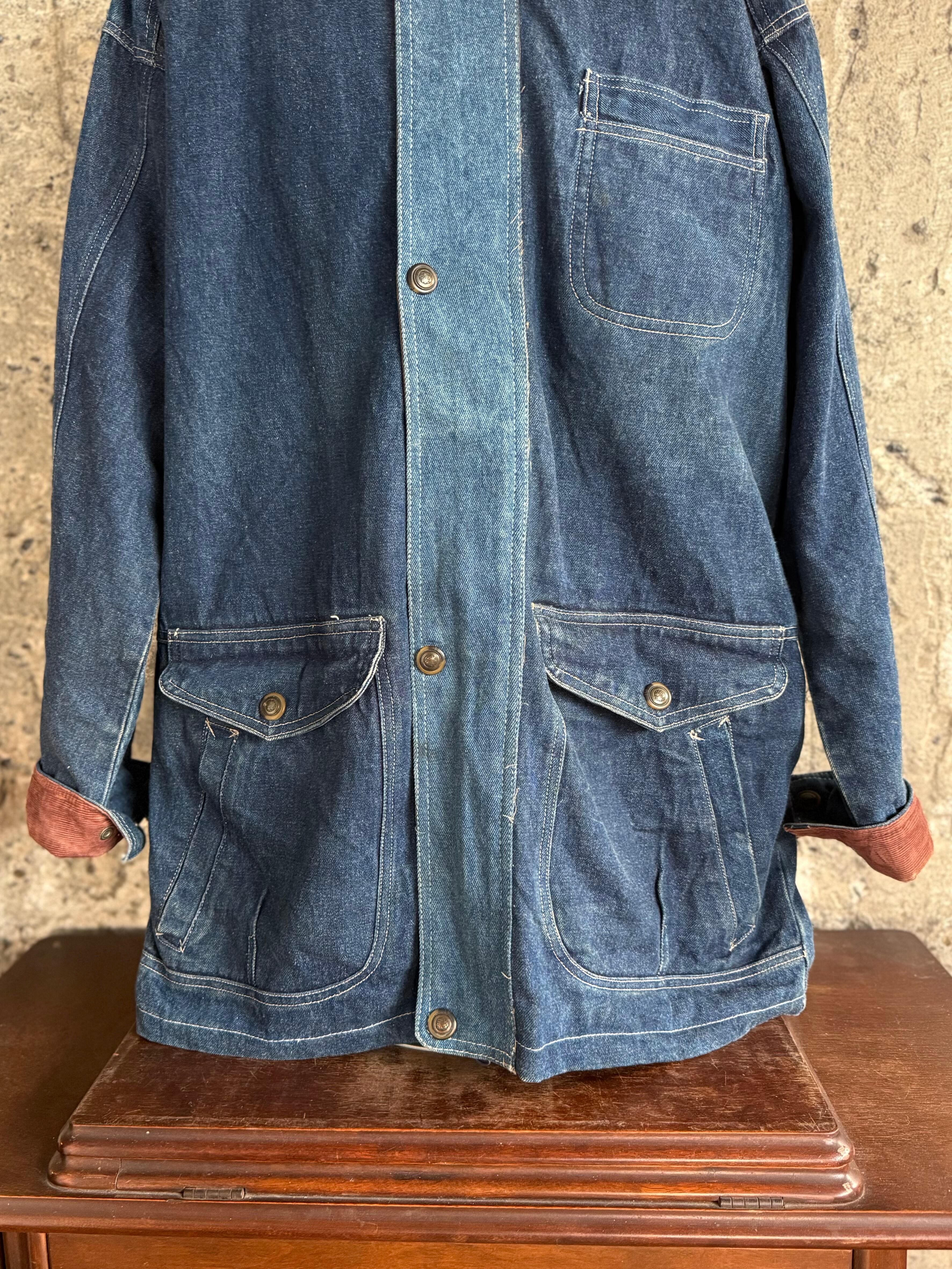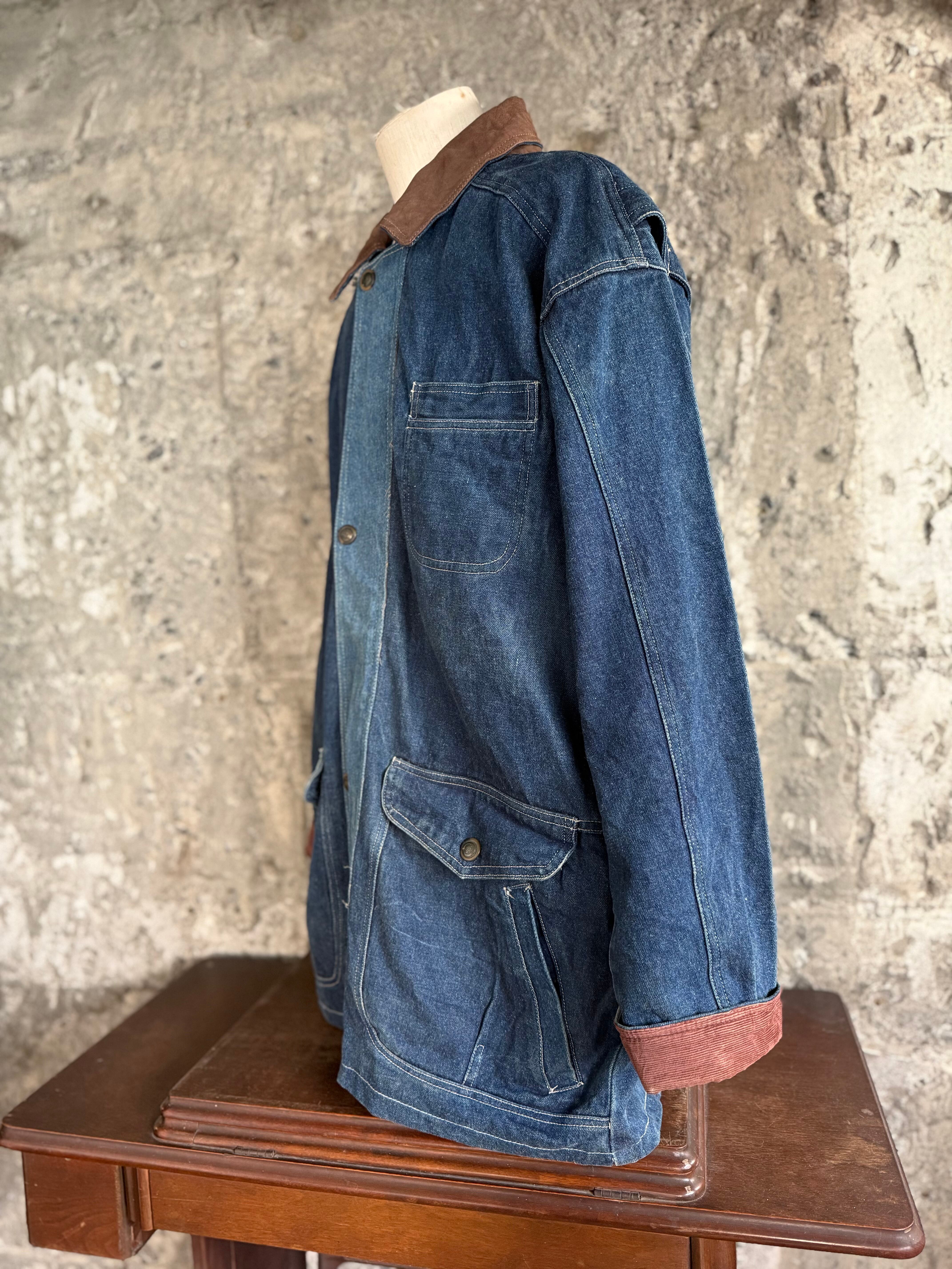 しっかりとしたデニム生地に、襟元には本革(Genuine Leather)を使用。ラフな印象になりがちなデニムに、大人っぽさと品の良さをプラスしてくれます。