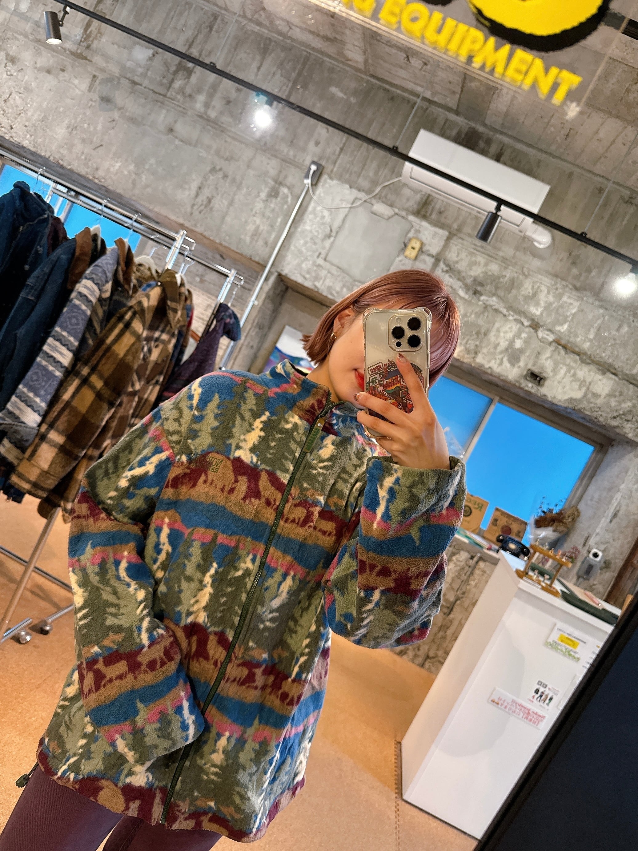 総柄フリースジャケット。