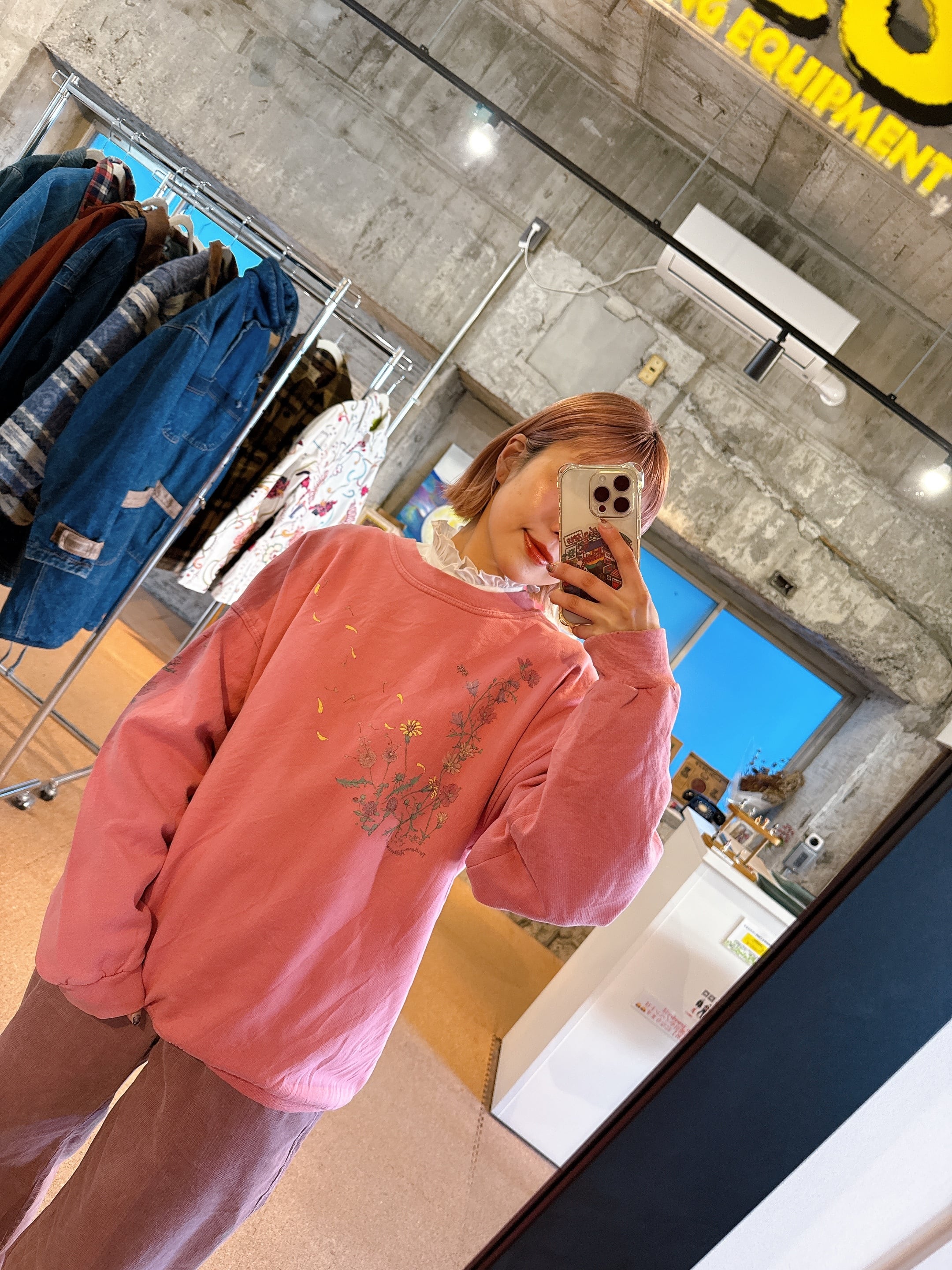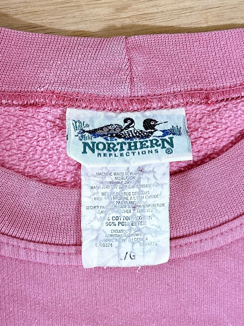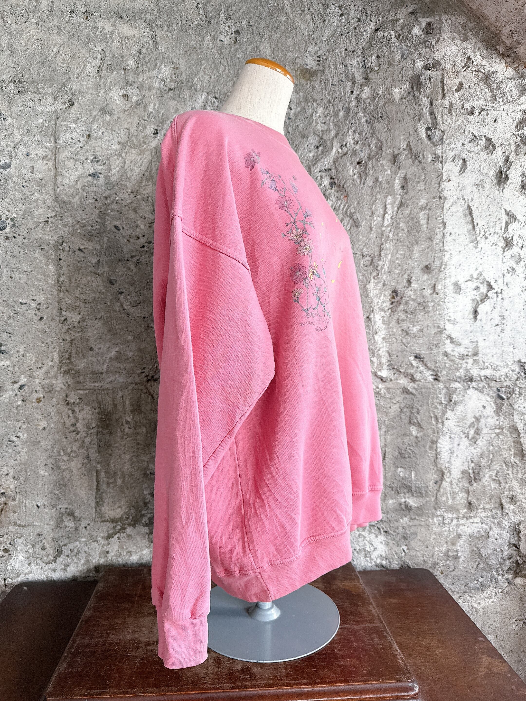 やさしいピンクカラーに、繊細なフラワープリントが映えるNORTHERN REFLECTIONSのスウェット。