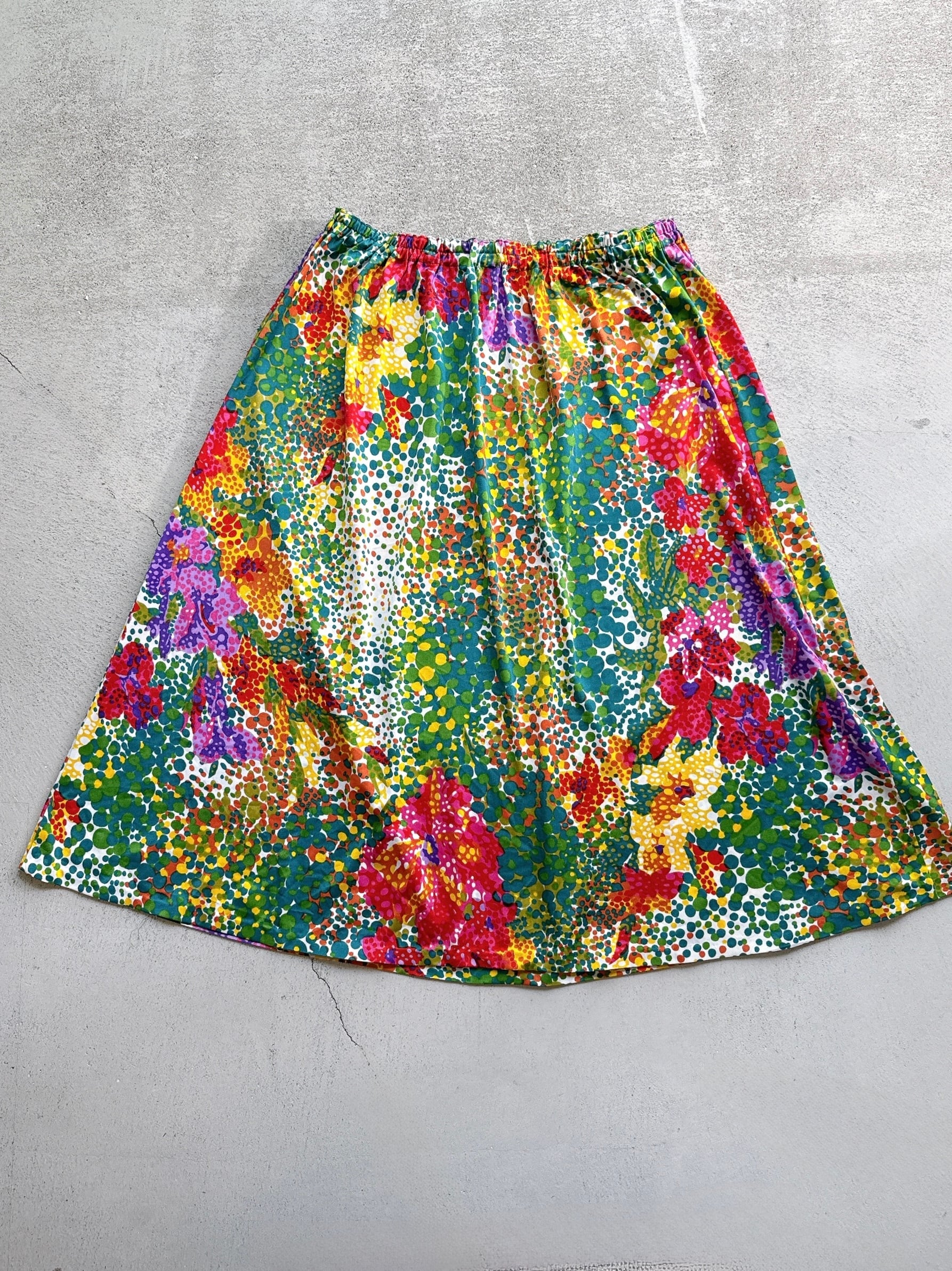 大胆なフラワープリントが重なり合う一枚。