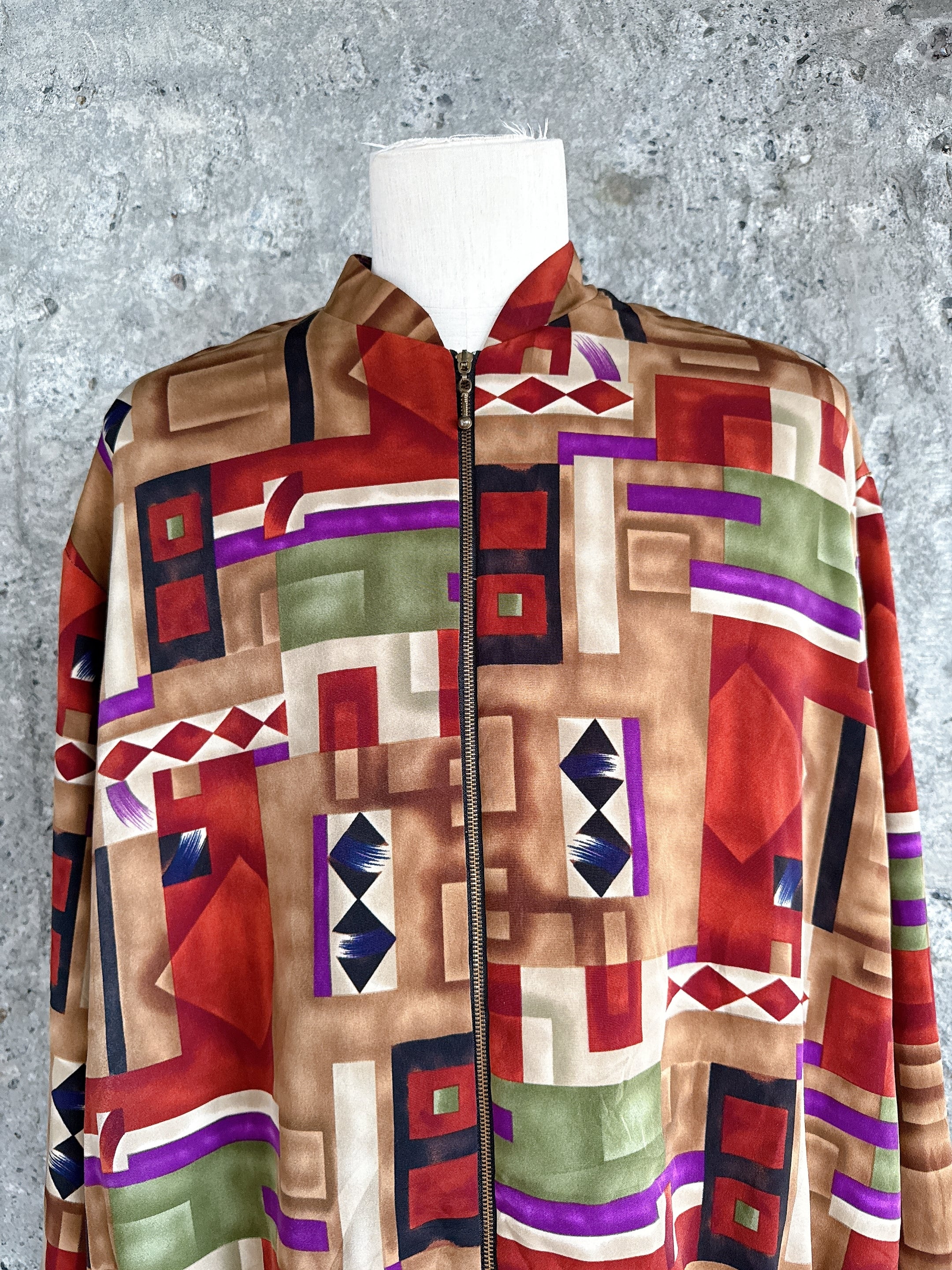 大胆なジオメトリック総柄。