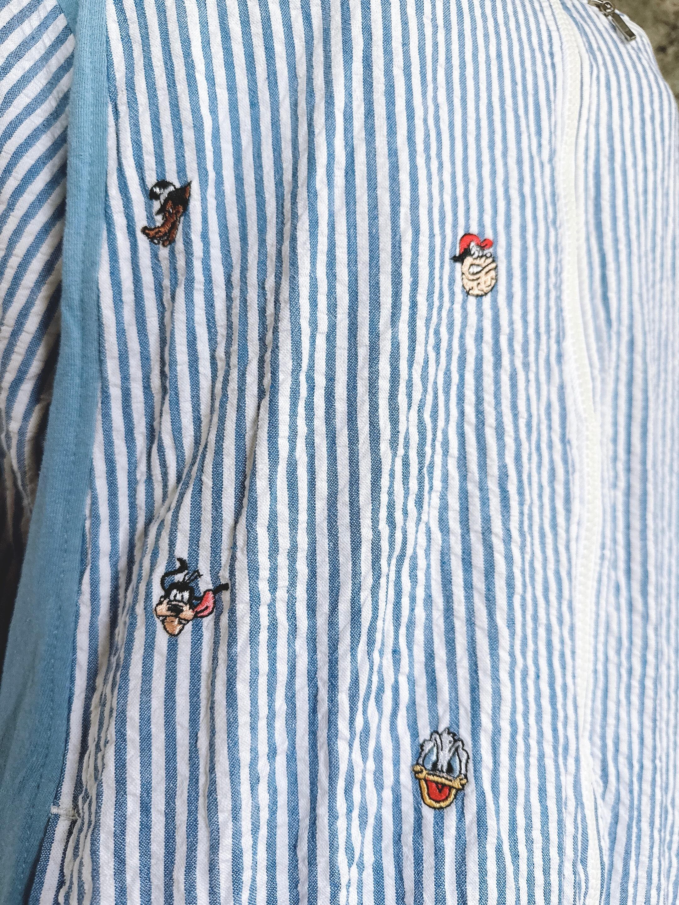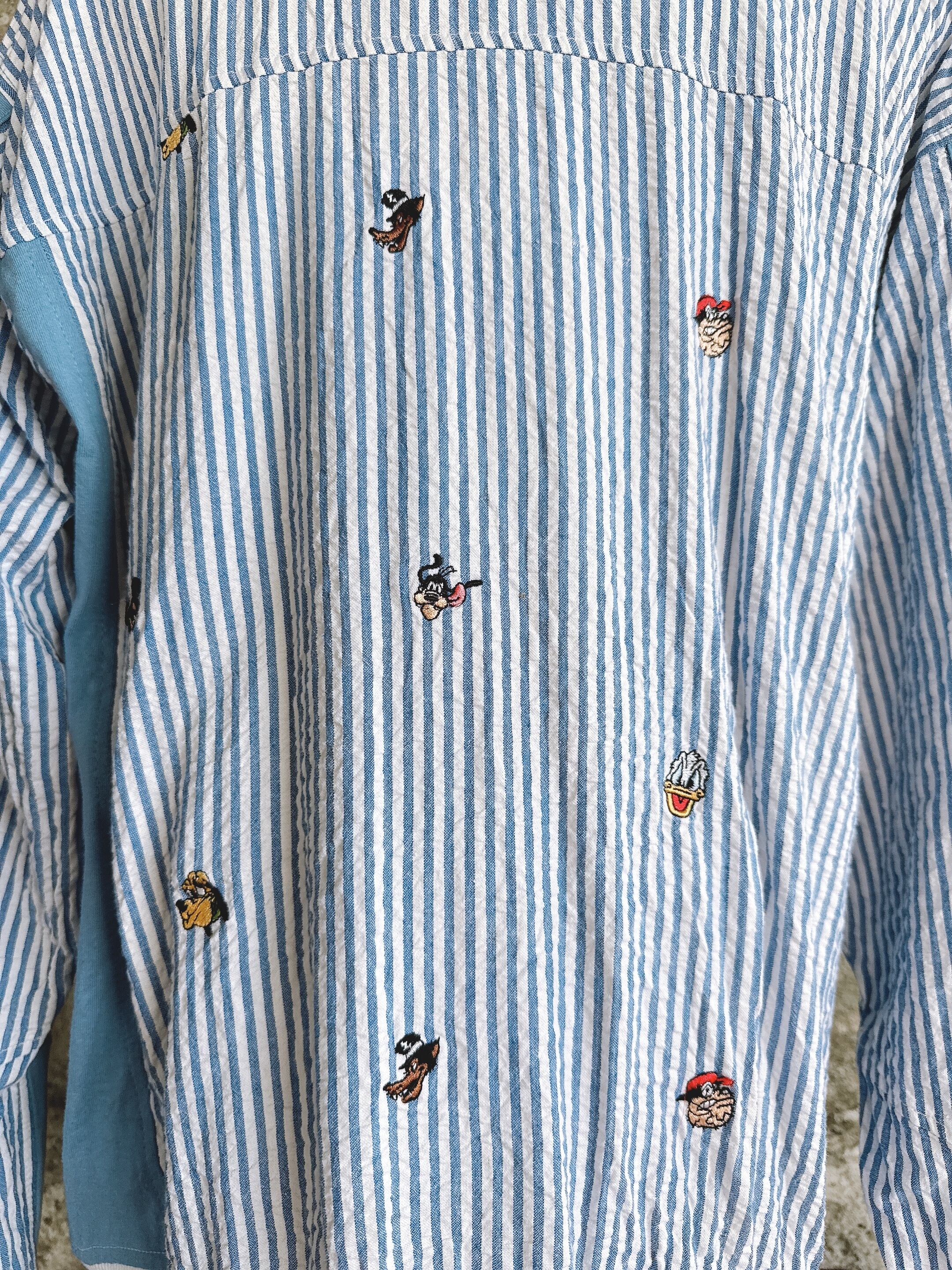 さりげなく散りばめられたディズニーキャラクター刺繍。