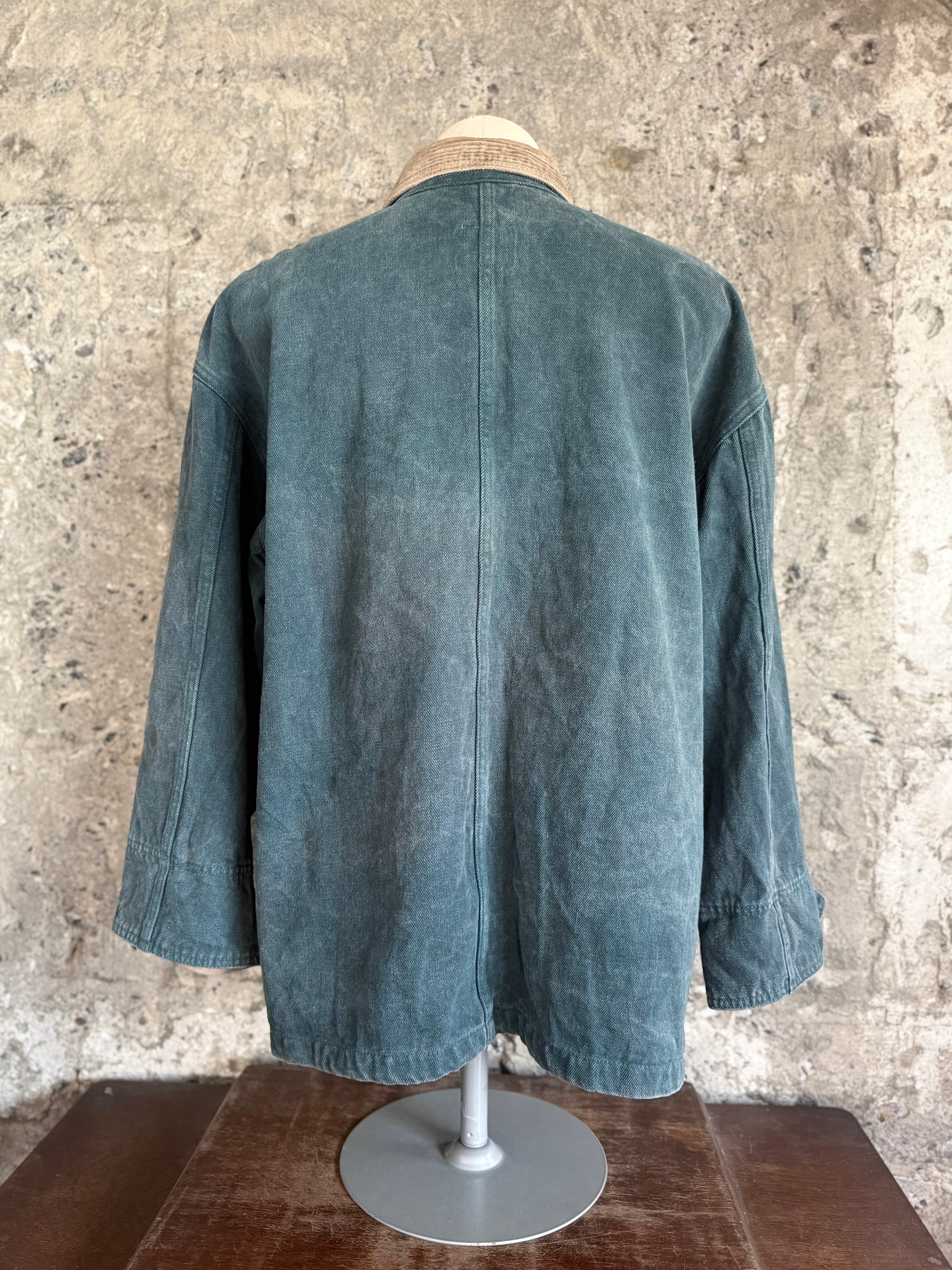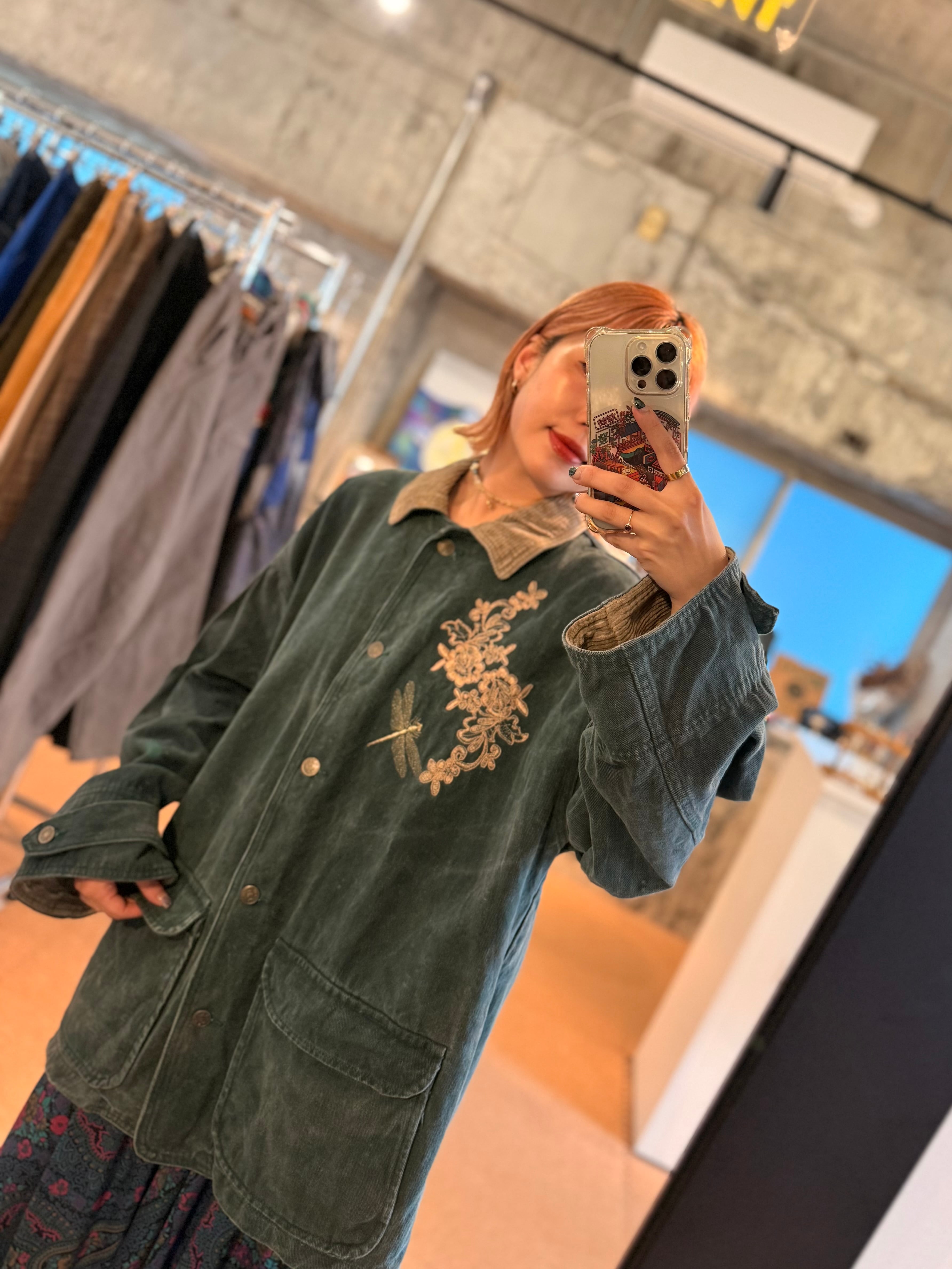 やわらかなコーデュロイ襟との組み合わせも可愛く、ワークテイストの中にさりげない華やかさを感じる一枚。