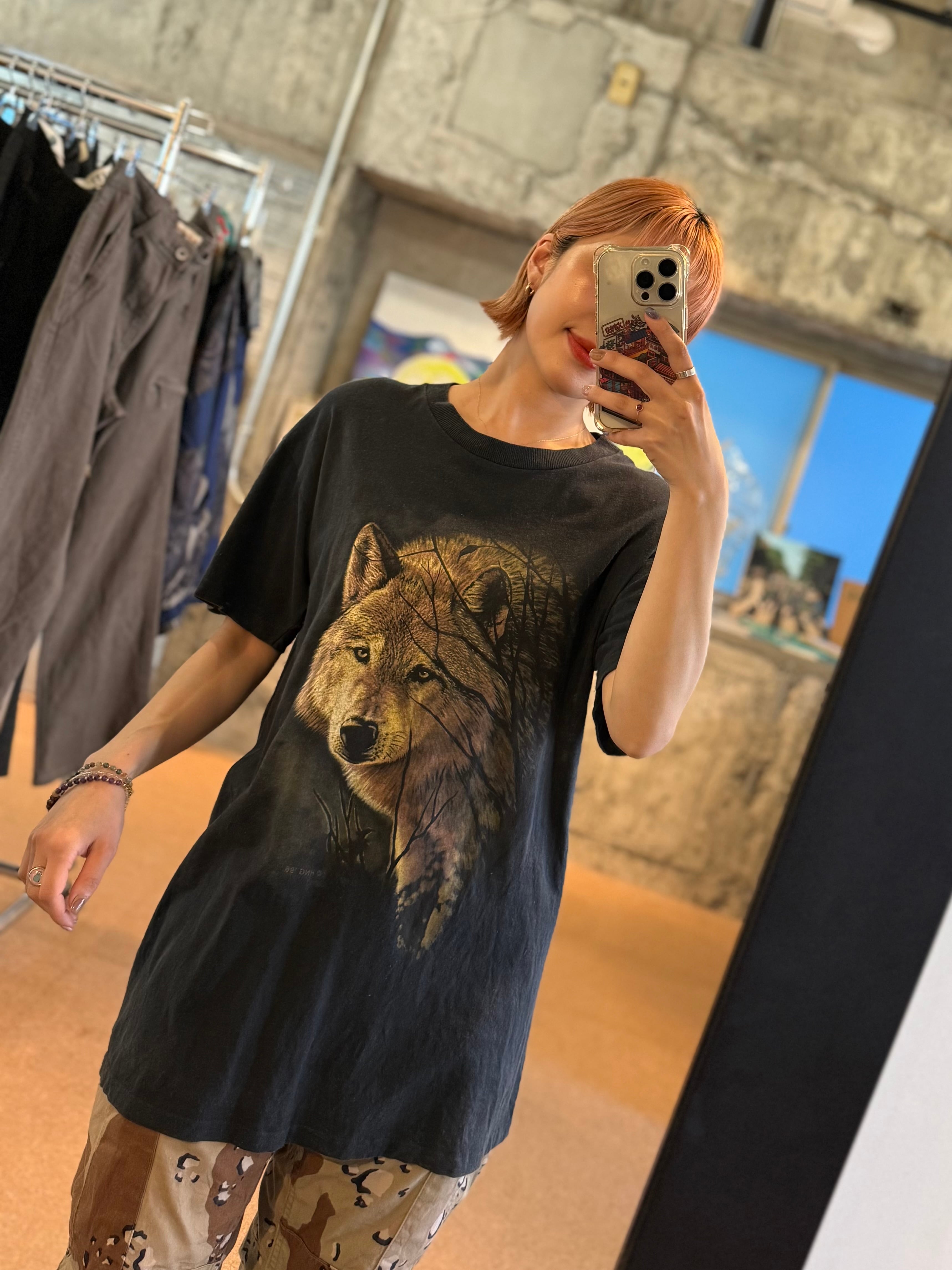 USA製 ウルフグラフィックTシャツ 狼 ブラック オオカミ